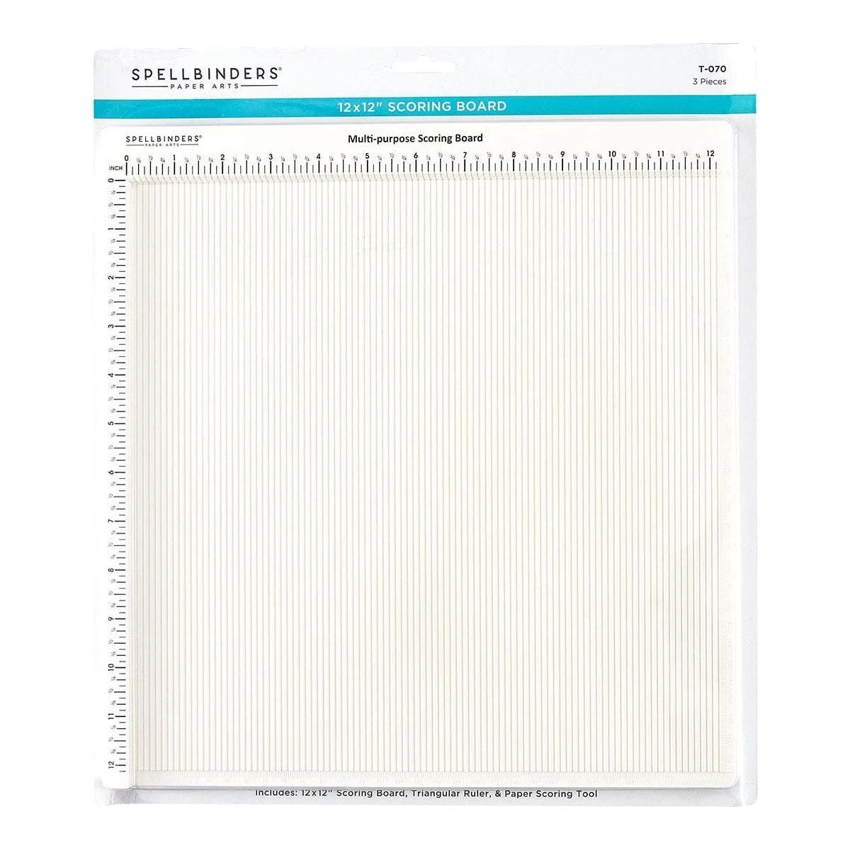 12 x 12” Scoring Board creates paper folds with accuracy and precision using this simple to use tool. The actual scoring surface is 12 x 12 inches with scoring guides every 1/8 inch. In addition to the scoring board, it includes a score & fold tool, and a triangle ruler for making envelopes & boxes. This lightweight board works for various sizes, all the way up to 12 x 12″. Easy to use for cardmaking, other paper crafting, school projects and more!