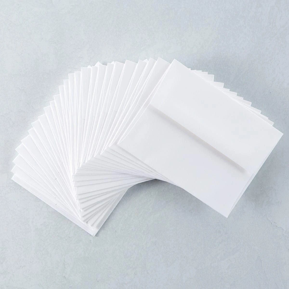 The A2 White Envelopes – 25 pack is made from high quality Neenah Classic Crest 80# Text Solar White. Contains 25 square top envelopes. Each envelope measures 4 3/8 x 5 3/4″. and has a booklet opening, straight flap, gum closure, and smooth finish.