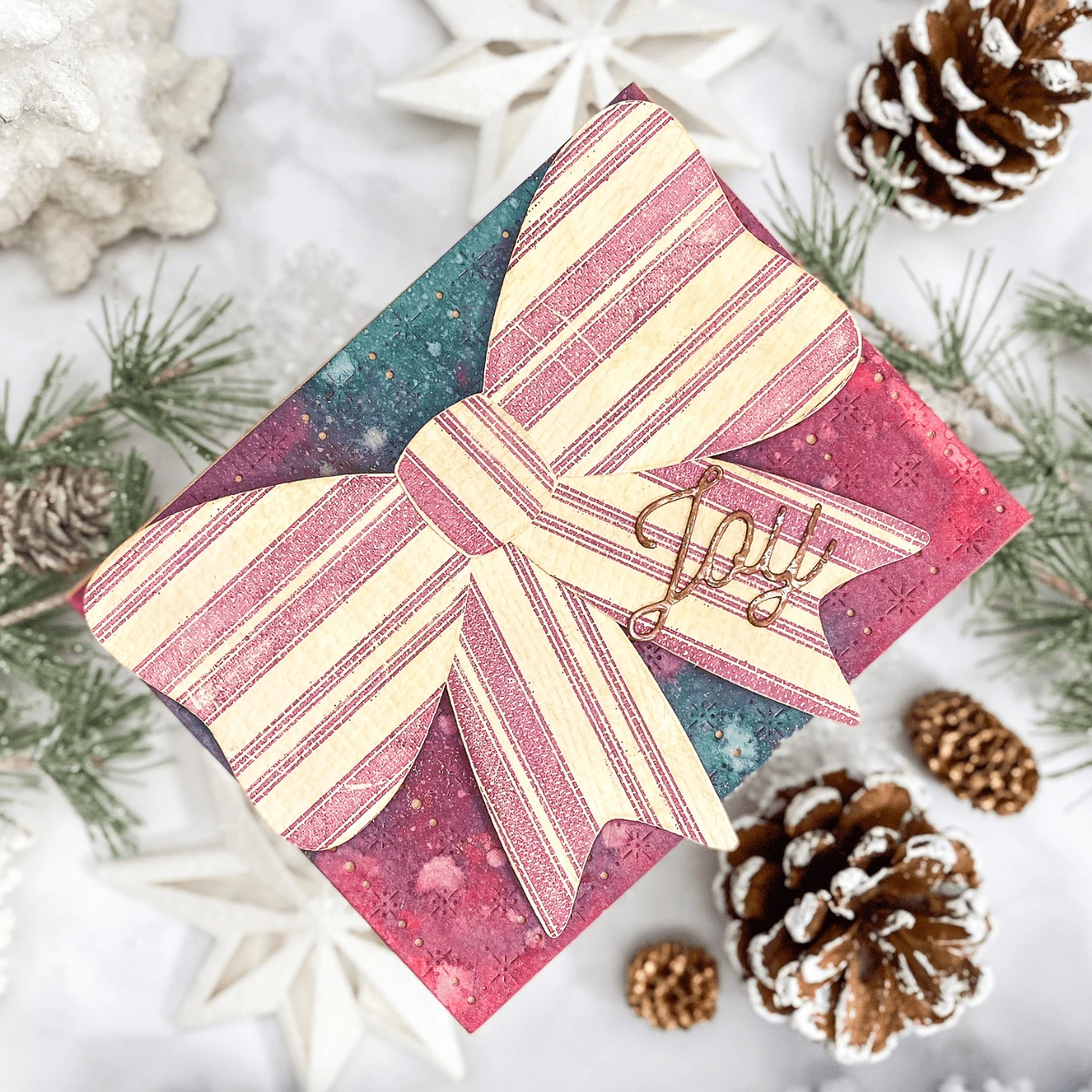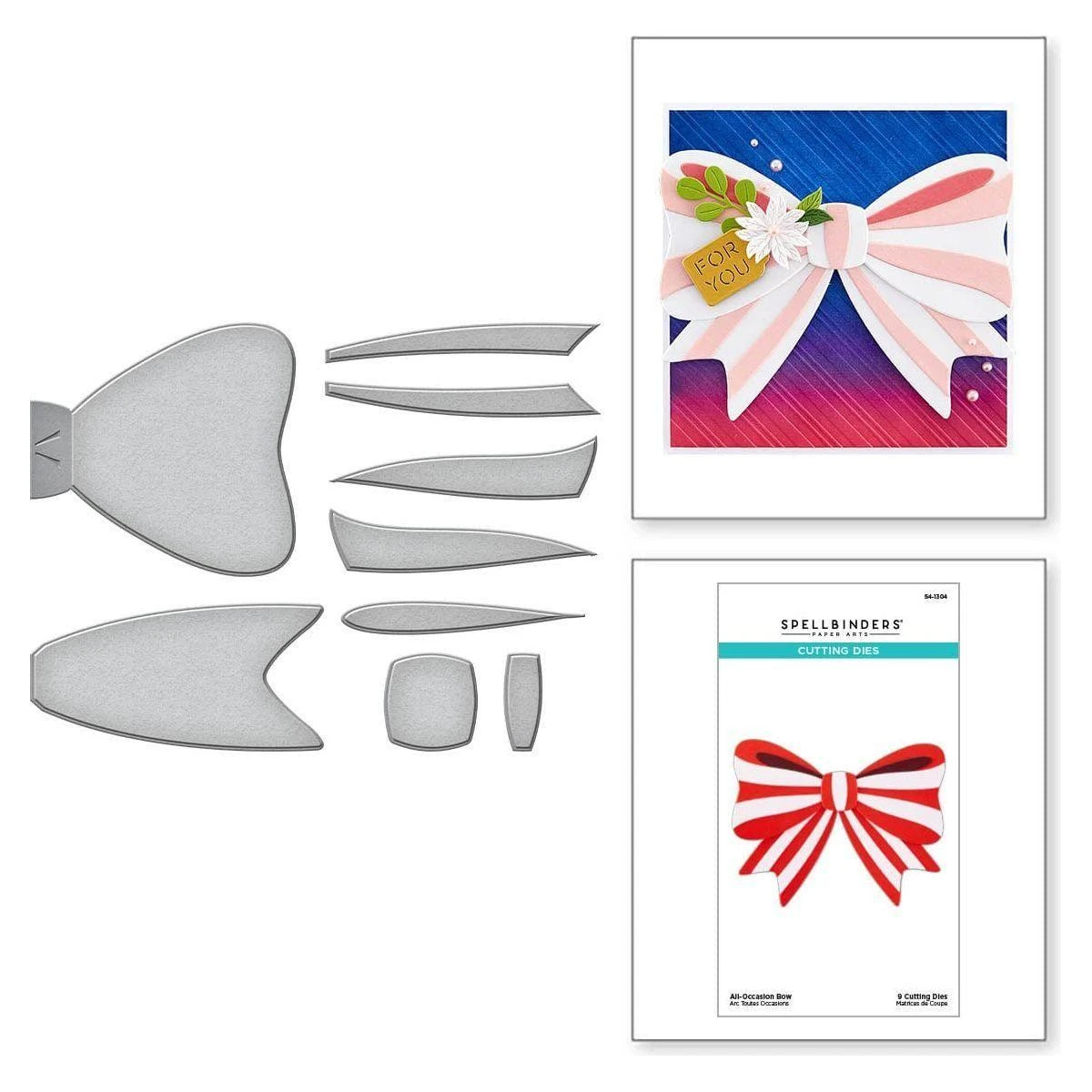 All-Occasion Bow Etched Dies are part of the Merry & Bright Collection. Assembled, this set of nine thin metal cutting dies creates a beautiful full bow design that measures 5.50 x 4.25 in./14.00 x 10.80 cm. This bow can be used in many different occasions…a must have in your cutting die collection.