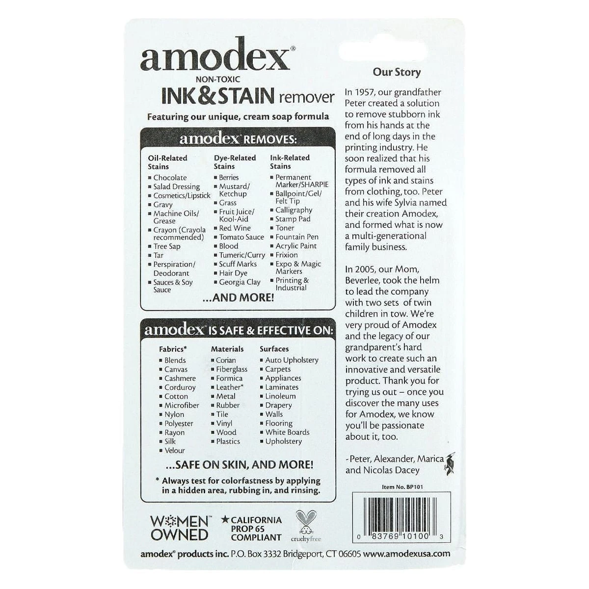 Amodex® Ink and Stain Remover easily cleans stains from surfaces and fabrics. Stains from inks, pens, gels, permanent marker, and may other crafting and non-crafting stains can easily be erased. Keep the crafting apron and workspace spick and spam with this product.