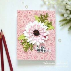 Anemone Etched Dies are from the Summer Solstice Garden Collection by Susan Tierney-Cockburn. Assembled, the set of four thin metal cutting dies makes a sweet Anemone flower. The finished flower with foliage measures approximately 2.13 x 2.75 x 0.75 in./5.40 x 7.00 x 1.90 cm.