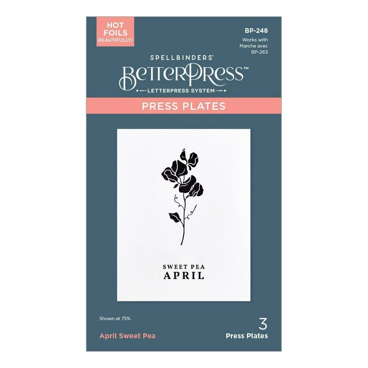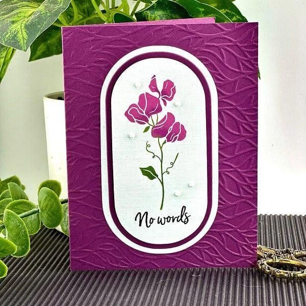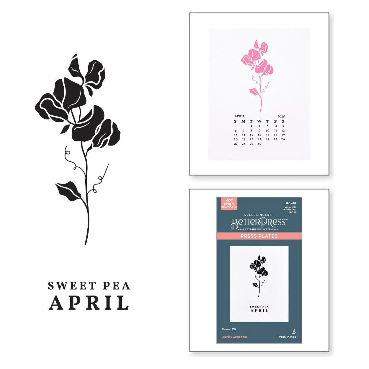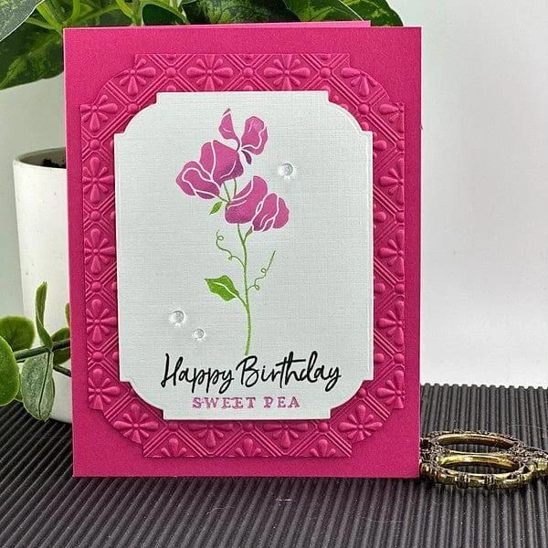 April Sweet Pea Press Plates are part of the Florals Through the Year Collection. The Sweet Pea symbolizes friendship and resembles butterfly shapes which celebrates the arrival of spring! The set of three plates includes the floral focal point, the birth flower month, and flower name. This lovely flower is ideal for celebrating April birthdays, but is versatile enough to be used in a myriad of ways! Create a field of flowers with several of the plates from this collection, or make this flower a focal point with a sentiment of your choice.