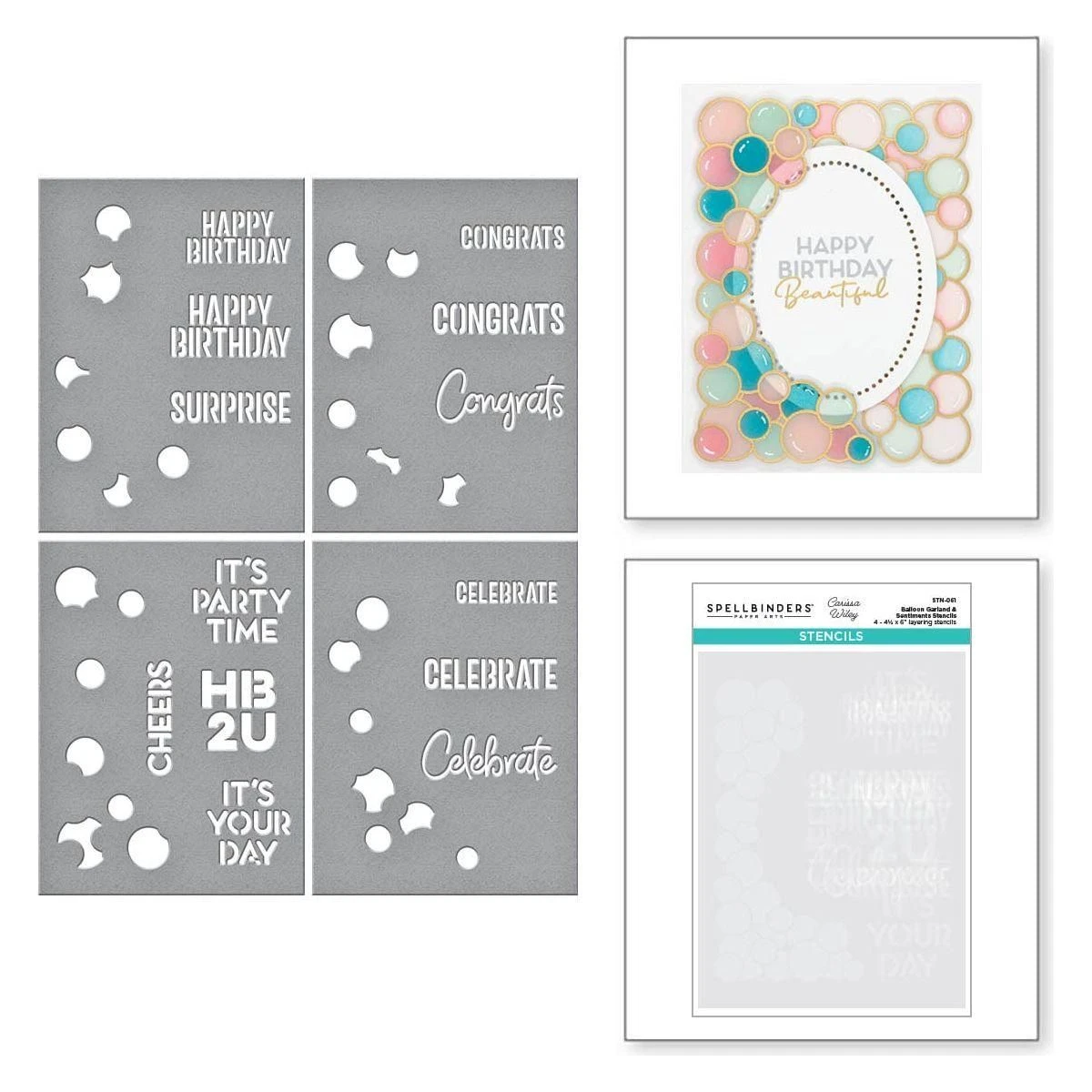 Balloon Garland & Sentiments Stencil is from the It’s My Party Collection by Carissa Wiley. This set of four durable mylar stencil sheets are layering stencils to create a one-layer dimensional balloon garland design, along with different celebratory sentiments to choose from. What a beautiful backdrop for any occasion from birthdays to weddings and more!