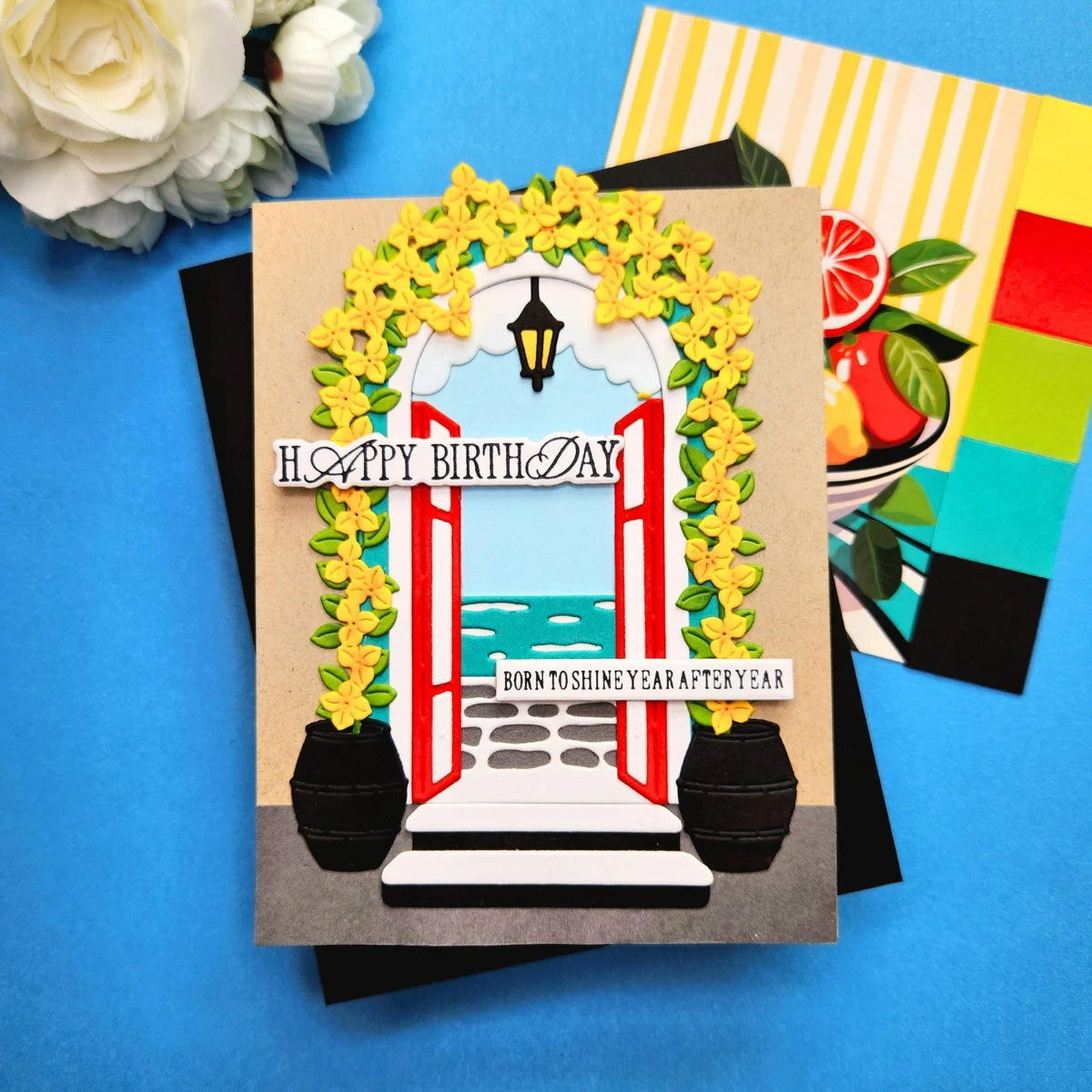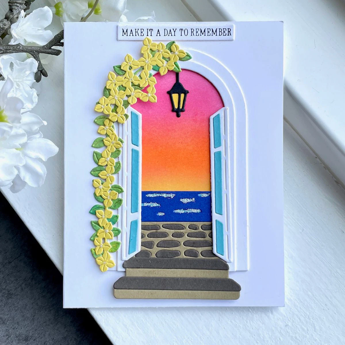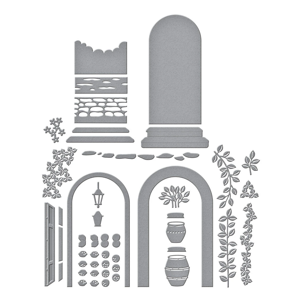 Beyond the Door Etched Dies are part of the La Dolce Vita Collection. This unique set of 29 thin metal cutting dies has all the makings of creating different scenes seen outside the entryway. Many details include cobblestones, clouds, vines and beyond! Even the door can be transformed into shutters, has a deeper frame and many more!