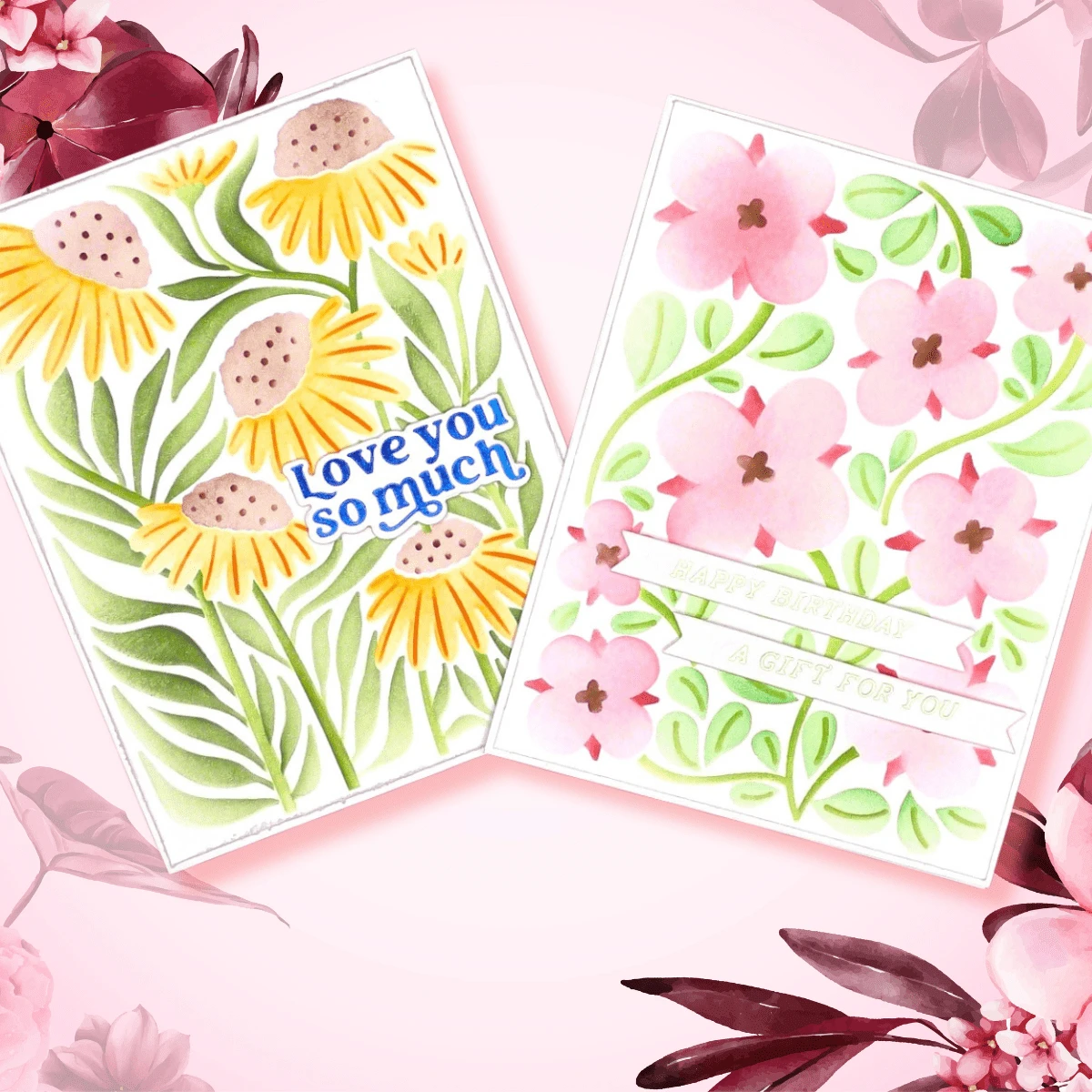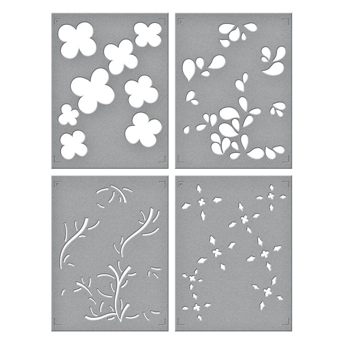 Blossoming Flowers Stencils are made of durable mylar stencil material. The four stencil sheets create a sweet floral background design.