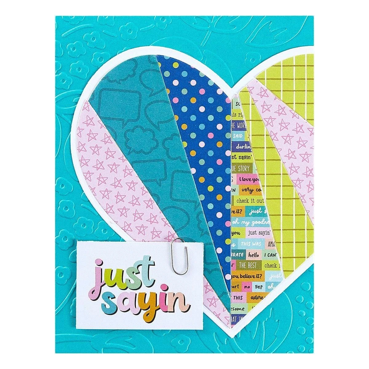 The Just Sayin’ Collection is full of bright colors and fun with a vintage vibe in every piece. Document everything you want to say in this debut collaboration from designer Kelly Bangs and Spellbinders!