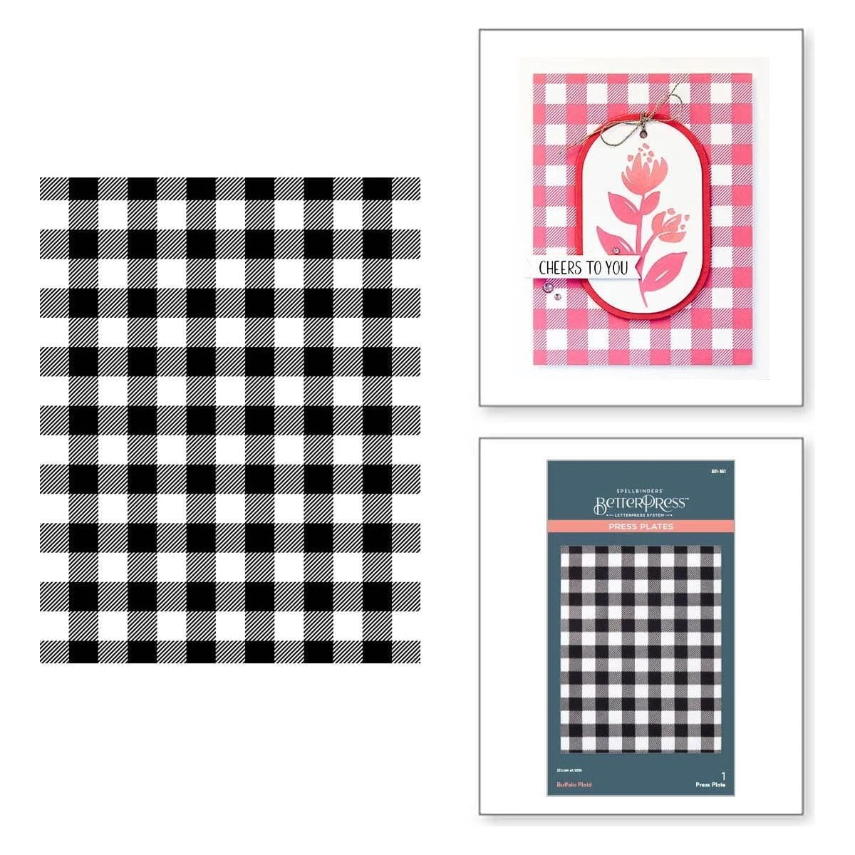 Buffalo Plaid Press Plate is a classic plaid design that fills the entire plate, adding warmth and whimsy to your projects. This versatile plate can be used for every season, simply by varying the color. Ink the plates with the BetterPress Ink to be pressed against the BetterPress Cotton Card Panel and Sheets for a crisp letterpress design. Also works beautifully in the Glimmer Hot Foil System.