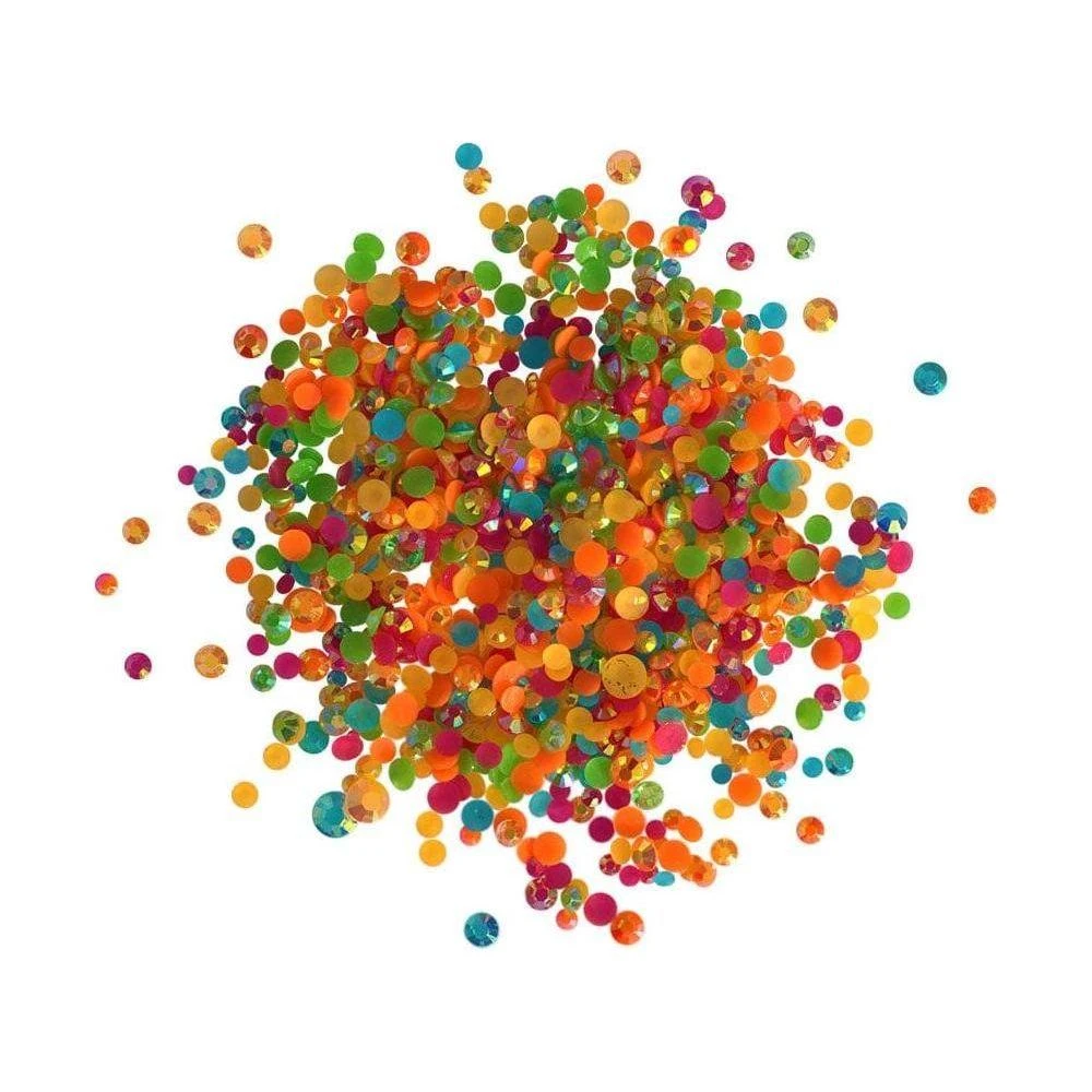 Key West Jewelz are a flat back craft embellishment from Buttons Galore and More. These cute embellishments come in a variety of sizes and work great on scrapbook pages, crafts for kids, home decor items, as nail art, and most DIY arts and crafts projects. The iridescent finish and faceted cut will add a classy touch to any creation. These jewelz are perfect as both a shaker element and for adding a touch of sparkle to your cards and other creations.