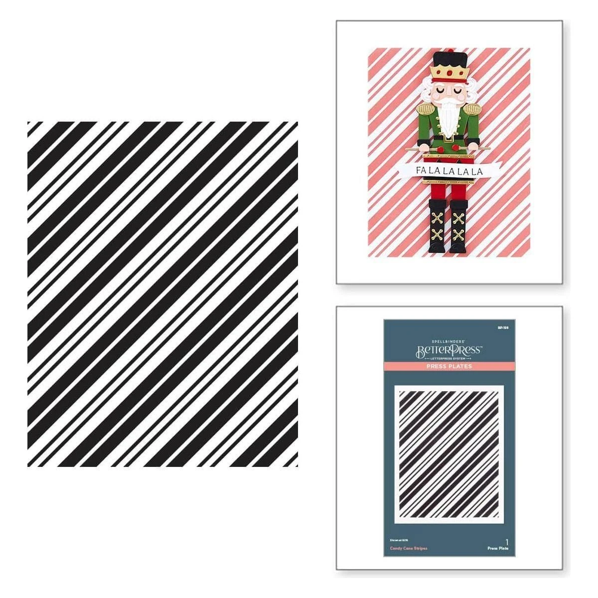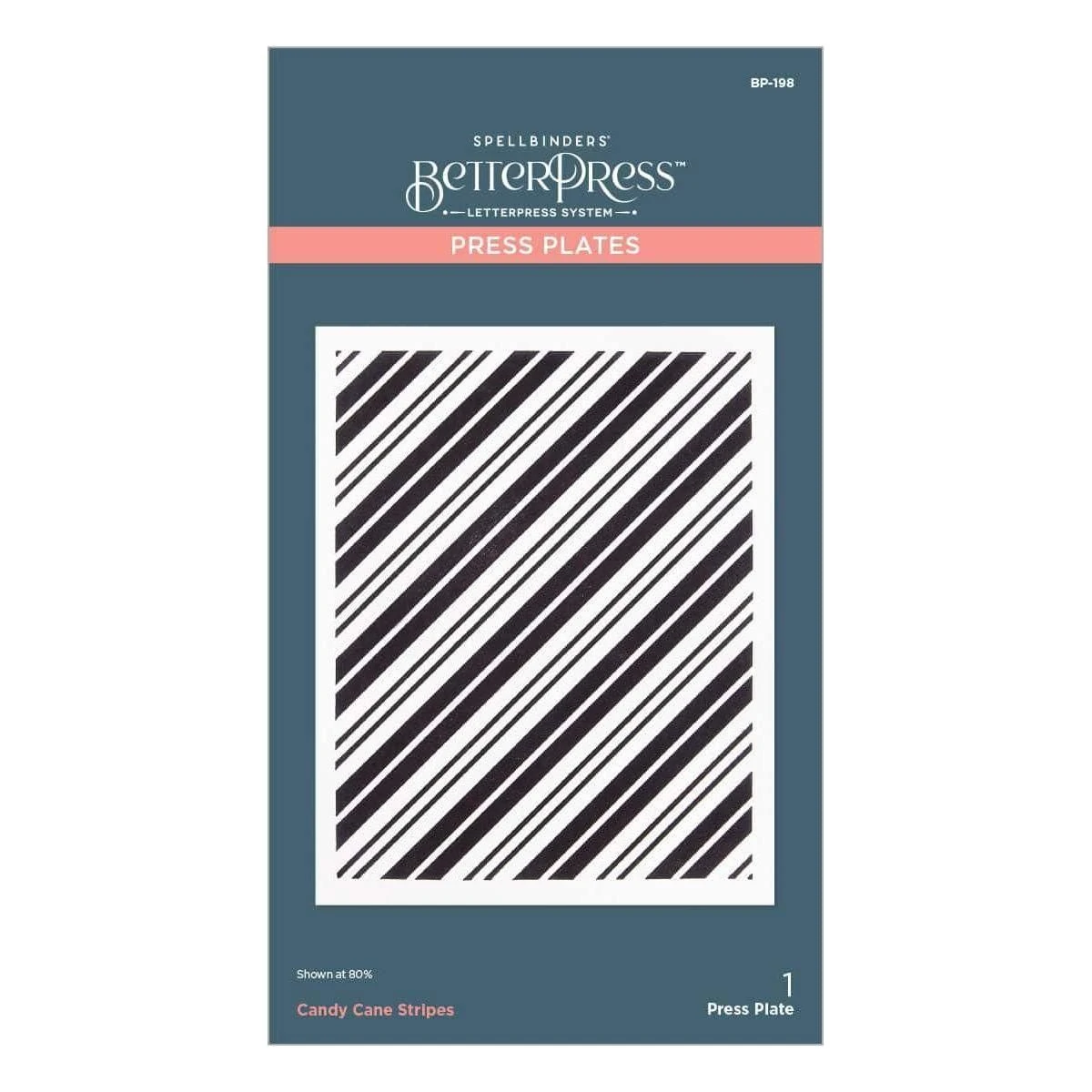 Candy Cane Stripes Press Plate is part of the Dancin’ Christmas Friends Collection with a plate full of delightful stripes inspired by the iconic candy cane motif! A festive design for any holiday project. Ink the plates with the BetterPress Ink to be pressed against the BetterPress Cotton Card Panel and Sheets for a crisp letterpress design. Only four easy steps for professional results! Place the BetterPress Press Plate onto the Chase (magnetic platform to hold the press plate). Next, tape Card Panel on the Platen (clear top plate with registration marks). Apply Ink onto Press Plate. Make Letterpress Sandwich and run through the manual die-cutting machine. Change the way you create with BetterPress, an innovative way to achieve the elegant look of letterpress without all the mess. It’s an easy-to-use system that produces professional stationery style with detailed impressions that can be felt to the touch. Combine BetterPress with the Glimmer Hot Foil System, the Sealed with Spellbinders wax seal program, and the extensive library of Spellbinders products to create one-of-a-kind cards, stationery, projects and more. The BetterPress System works with your manual die-cutting machine to create beautiful, effortless, and detailed letterpress effects.