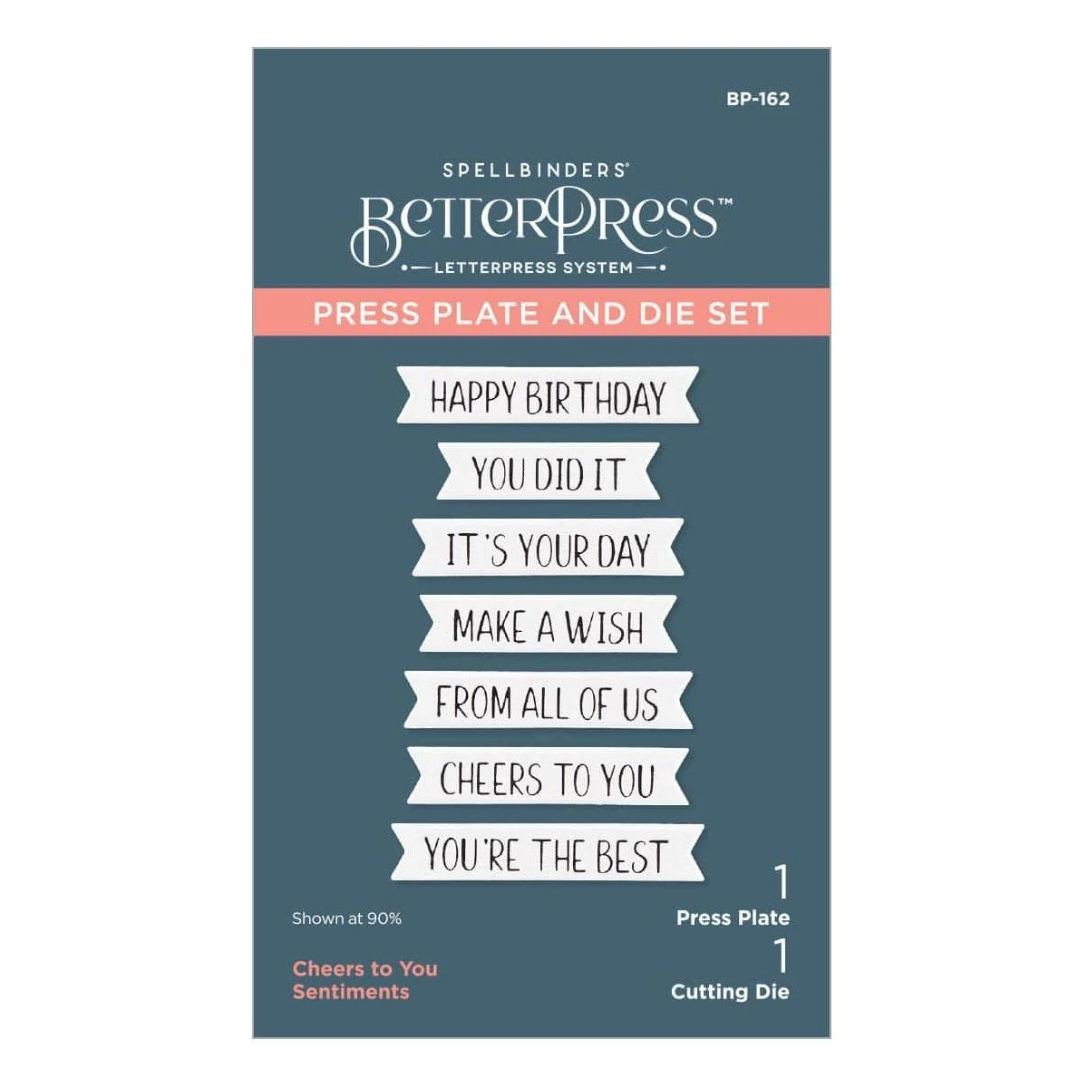 Cheers to You Sentiments Press Plate & Die Set has one press plate stacked with seven birthday-themed sentiments. A corresponding thin metal cutting die cuts all the sentiments in one pass. From ‘Happy Birthday’ to ‘It’s Your Day’ to ‘Cheers to You,’ they can be added to many of your birthday card creations. Ink the plates with the BetterPress Ink to be pressed against the BetterPress Cotton Card Panel and Sheets for a crisp letterpress design.