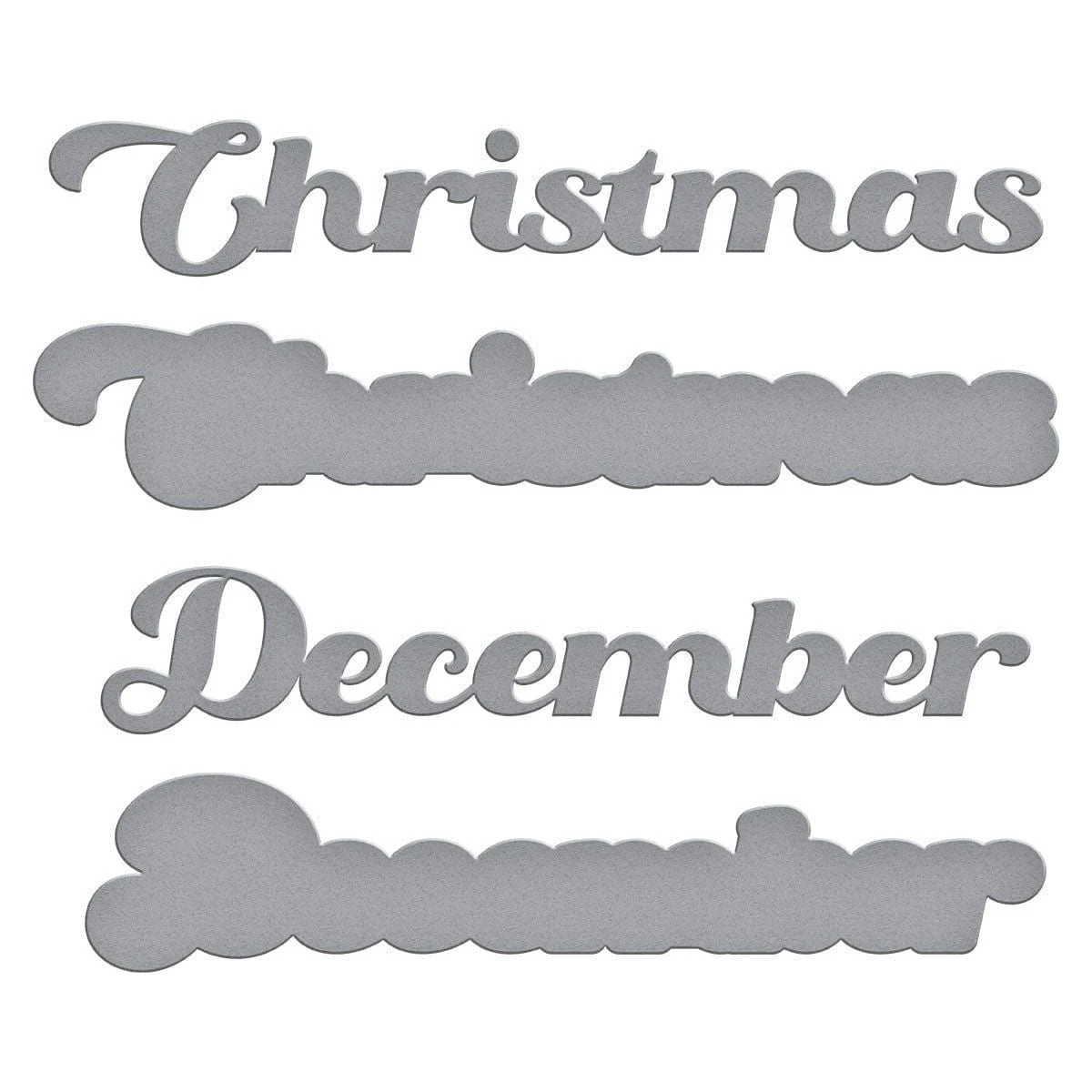 Christmas & December Etched Dies are from the Storytelling by Spellbinders Scrapbooking Collection and includes a set of four thin metal cutting dies surrounding the words, Christmas and December. It cuts a big bold font with an outline to help highlight the words more.