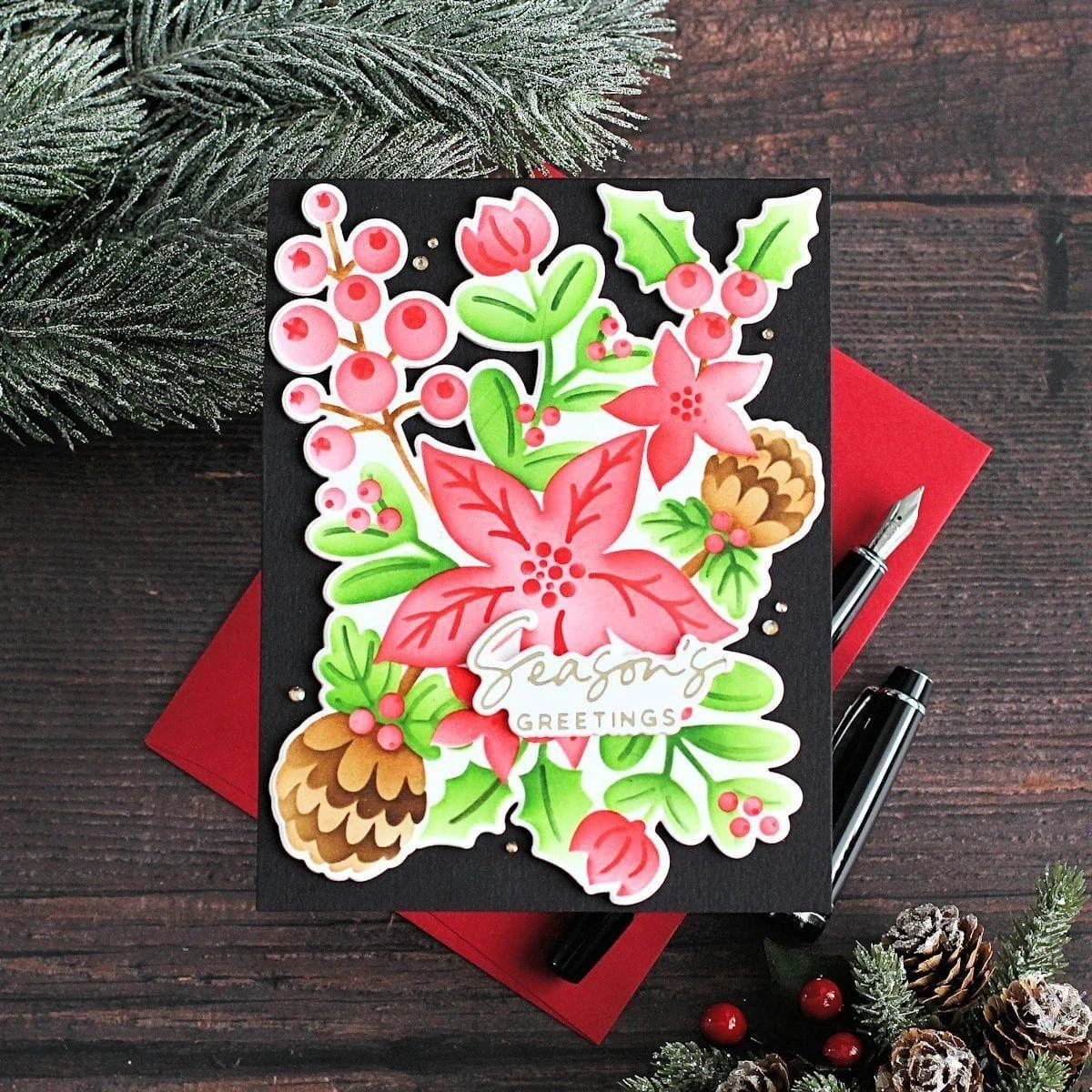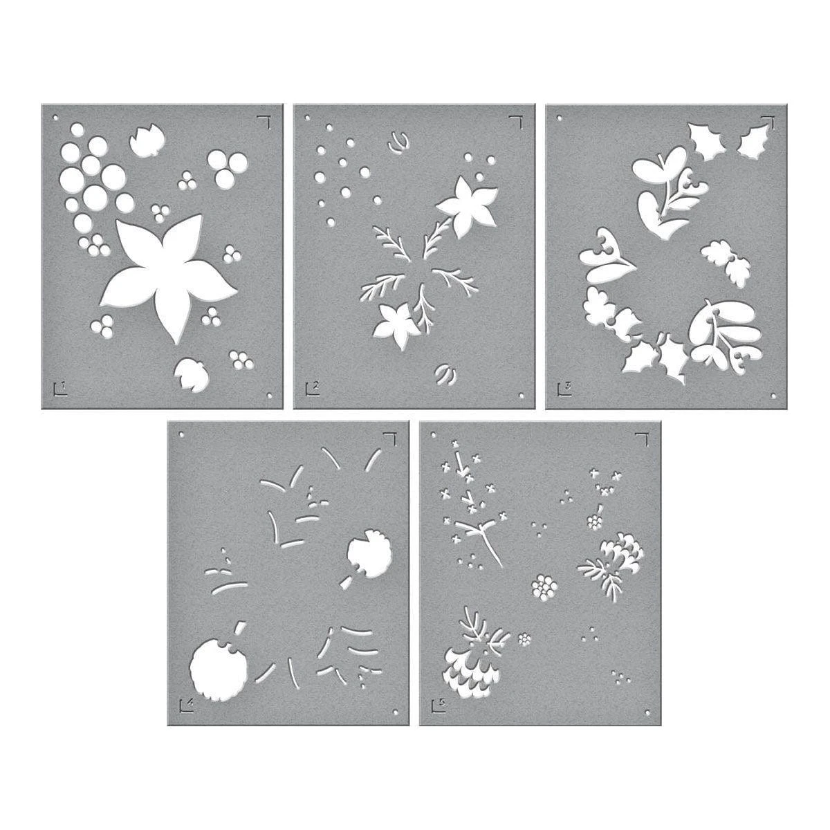 Christmas Florals Stencil is from the Classic Christmas Collection and are made of durable mylar stencil material. The five stencil sheets and mask pieces are designed to work with S5-599 Christmas Florals & Sentiments Etched Dies. Not only will it bring beautiful colors to this floral motif but add texture medium for interest. We also offer this beautiful duo in a bundle set, BD-0775 Christmas Florals Die and Stencil Bundle.