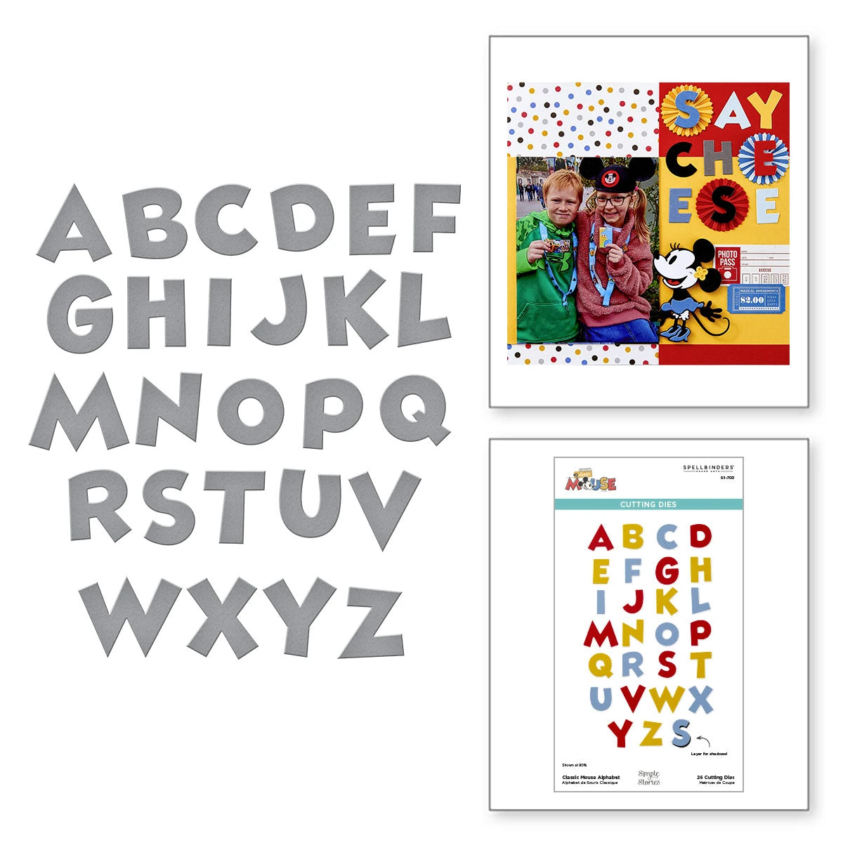 Classic Mouse Alphabet Etched Dies are from the Say Cheese Classic Mouse Collection. Celebrate birthdays, special occasions, or create adorable titles and names with this set of 26 thin metal dies that cut every letter of the alphabet. Styled in a cute and familiar font, this set will be a must-have you reach for again and again. Combine with S4-1469 Classic Mouse Numbers & Punctuation for tons of options on scrapbook pages, cards, or other projects.