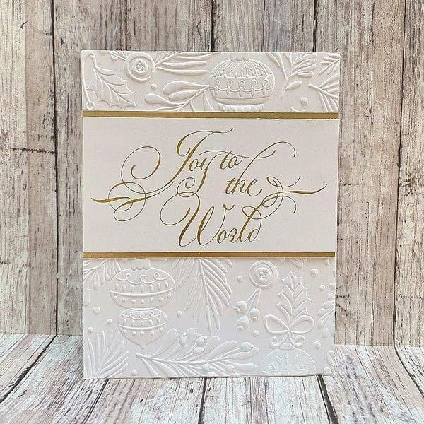 Copperplate Joy to the World Press Plate is part of the Copperplate Holiday Sentiments Collection by Paul Antonio. This plate presses the words, Joy to the World, in an elegant Copperplate script onto your card creation. Ink the plates with the BetterPress Ink to be pressed against the BetterPress Cotton Card Panel and Sheets for a crisp letterpress design.