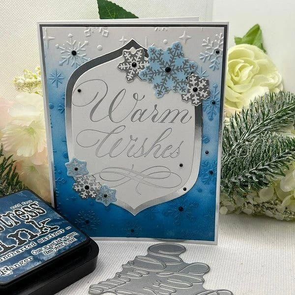 Copperplate Warm Wishes Press Plate is from the Copperplate Holiday Sentiments Collection by Paul Antonio. This plate presses the words, Warm Wishes, in an elegant Copperplate script onto your card creation. Ink the plates with the BetterPress Ink to be pressed against the BetterPress Cotton Card Panel and Sheets for a crisp letterpress design.