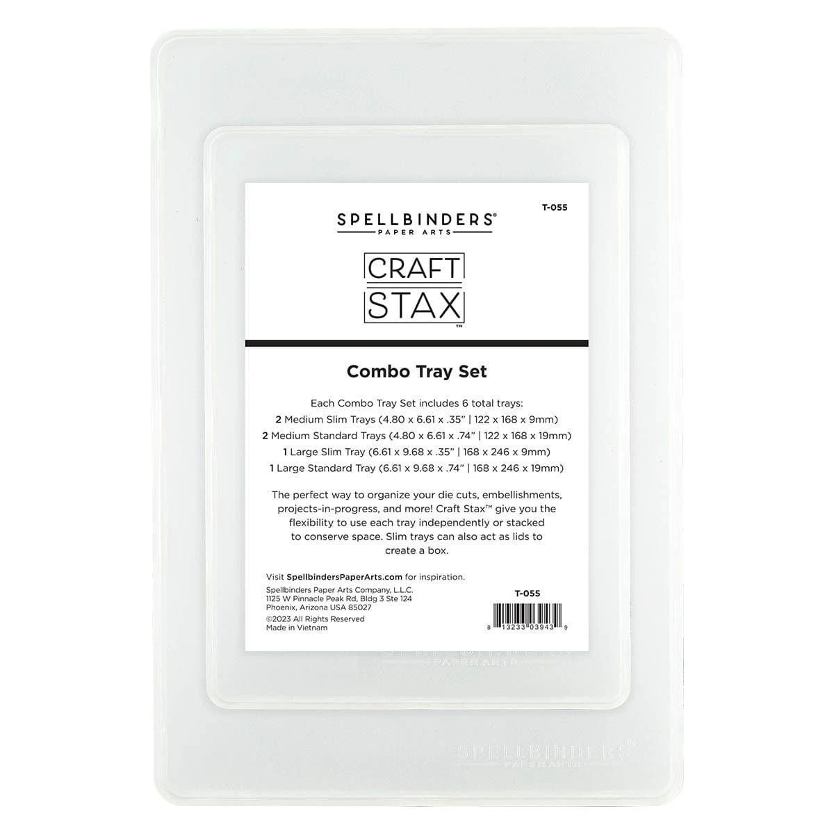 Craft Stax – Combo Tray Set This combo set includes six stackable frosted plastic trays that combine to create three storage boxes – one large and two medium. These versatile trays can be used in multiple ways: combine a slim tray with a standard tray to create a storage box, use each tray separately, or stack them all together for a space-saving storage solution.