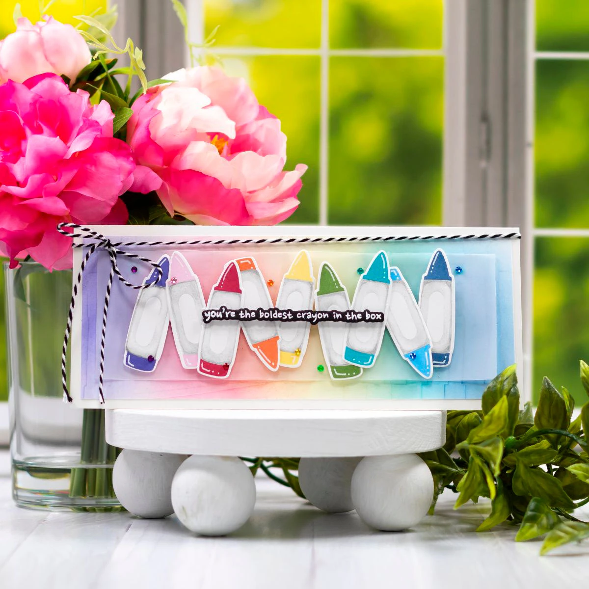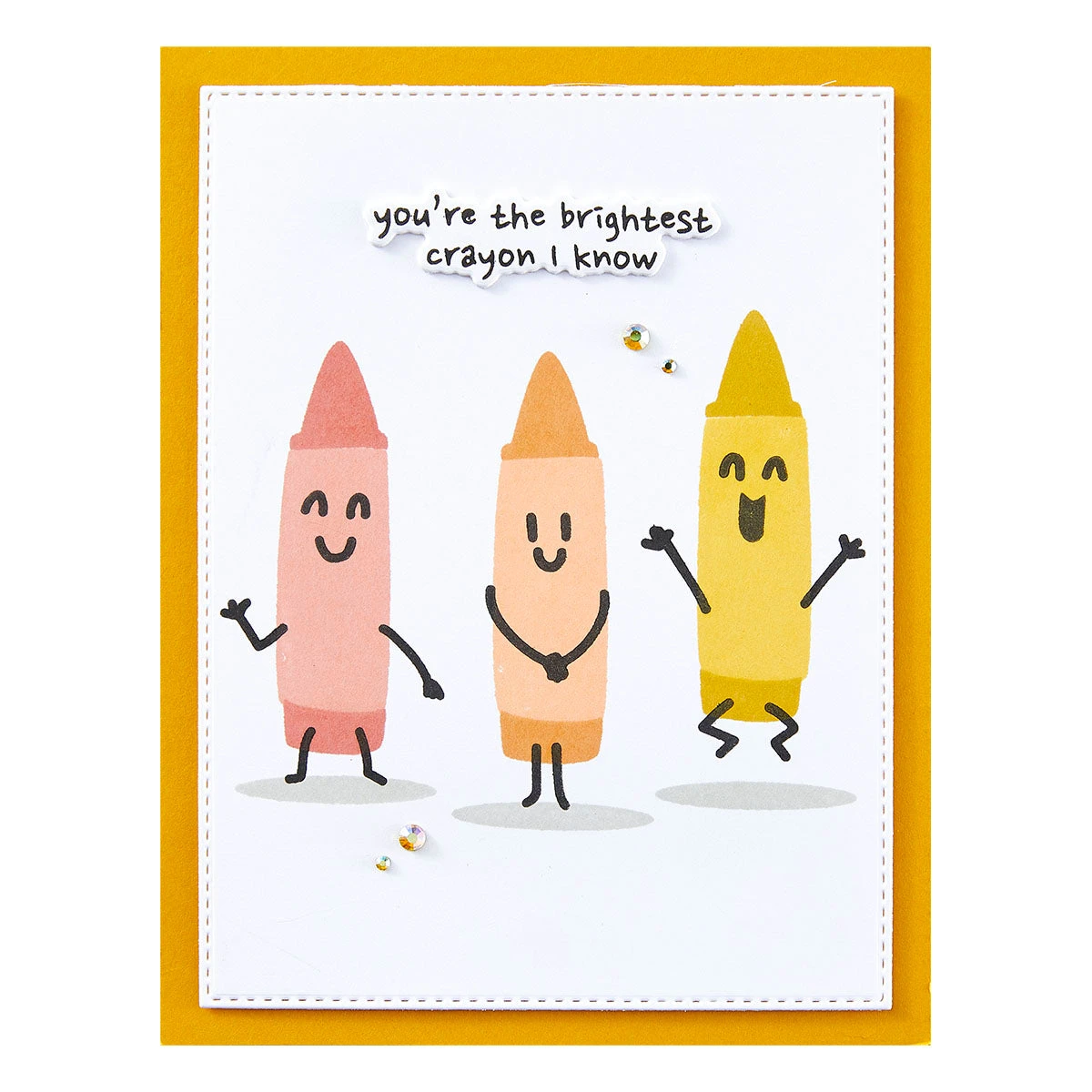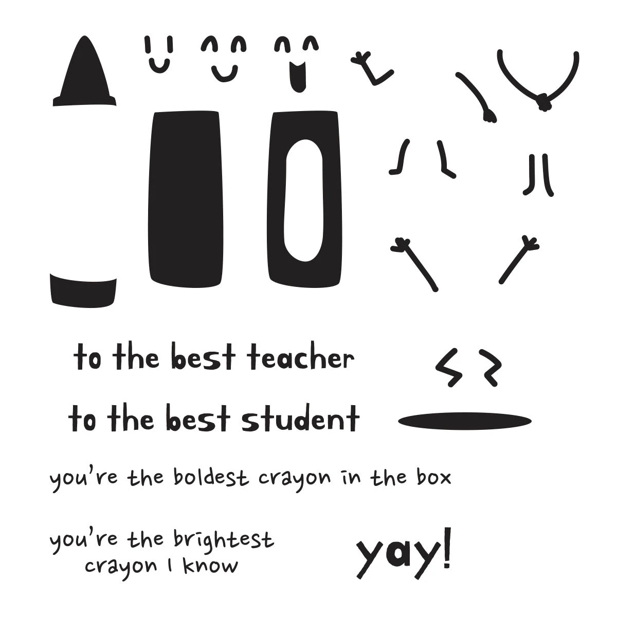 Crayon Creations – May 2025 Clear Stamp of the Month! Bring cheerful charm and classroom vibes to your cards with the “Crayon Creations” Clear Stamp of the Month! This fun set includes mix-and-match crayon shapes, expressive faces, arms, legs, and uplifting sentiments perfect for teachers, students, and anyone who shines bright.