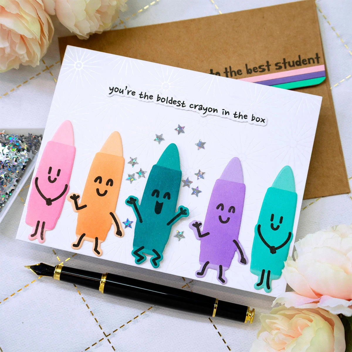 Use the customizable elements to build adorable characters and pair them with messages like “you’re the brightest crayon I know” or “to the best teacher.” Ideal for back-to-school, thank you, or encouragement cards with personality and heart!