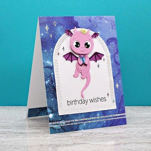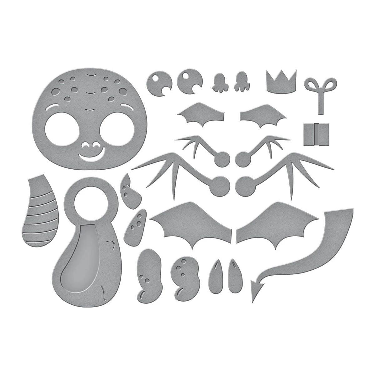 Dancin’ Birthday Dragon Etched Dies is part of the Monster Birthday Collection. Who can resist this sweet dragon? The set of six thin metal cutting dies can also make it dance with its moving body. Finished Dancin’ Dragon: 2.20 x 3.03 in./5.60 x 7.70 cm. Add dancing partners from the same collection, S3-495 Dancin’ Birthday Monster and S2-378 Dancin’ Birthday Panda