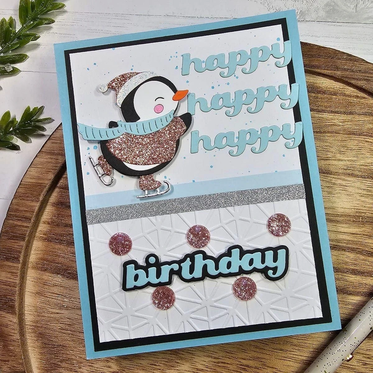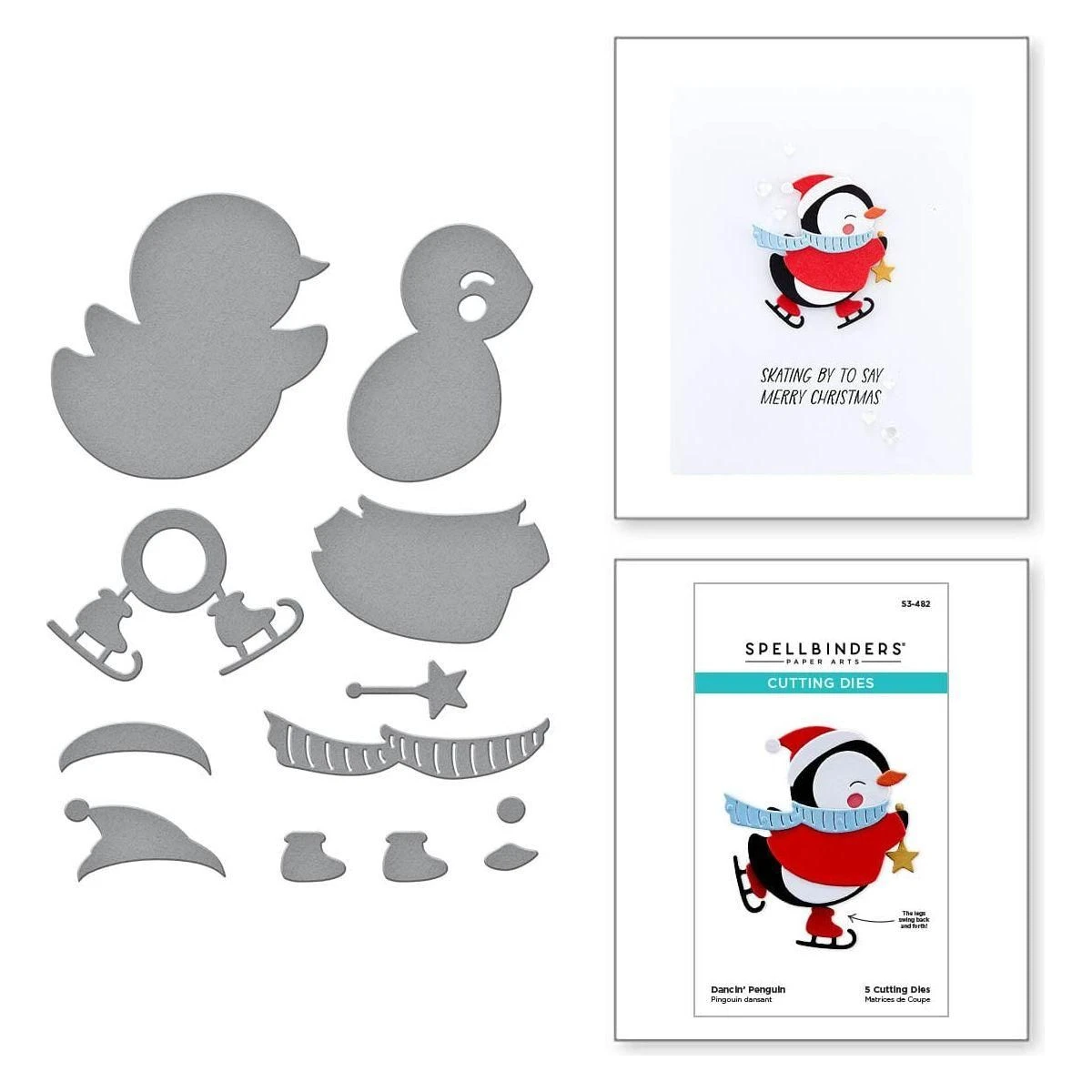 Dancin’ Penguin Etched Dies is part of the Dancin’ Christmas Collection with a set of five thin metal cutting dies to assemble this adorable penguin. Watch him skating as his legs move back and forth – LOVE! The assembled Penguin measures 2.25 x 2.00 in./5.72 x 5.08 cm.