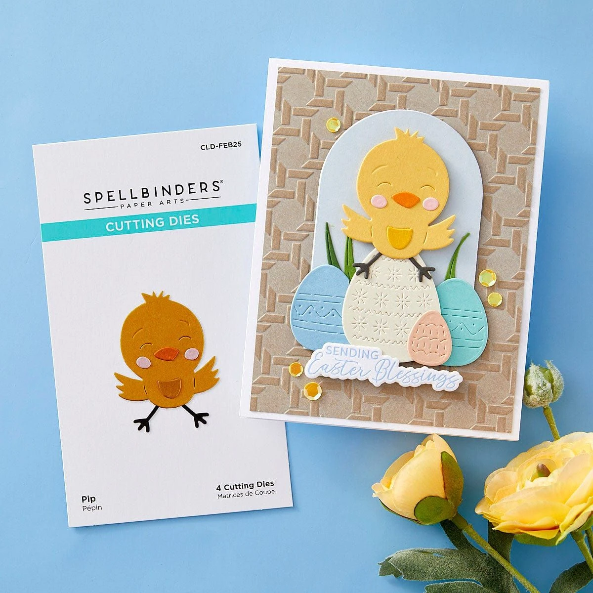 Deluxe Caboodle Bonus – Pip  – Coordinates with the February 2025 Club Kits of the Month. This cheerful 4-piece die set brings Pip the chick to life with customizable details and a playful design. Perfect for creating adorable spring and Easter-themed cards, tags, and decorations. Add a touch of happiness to your projects with this fun and versatile set!