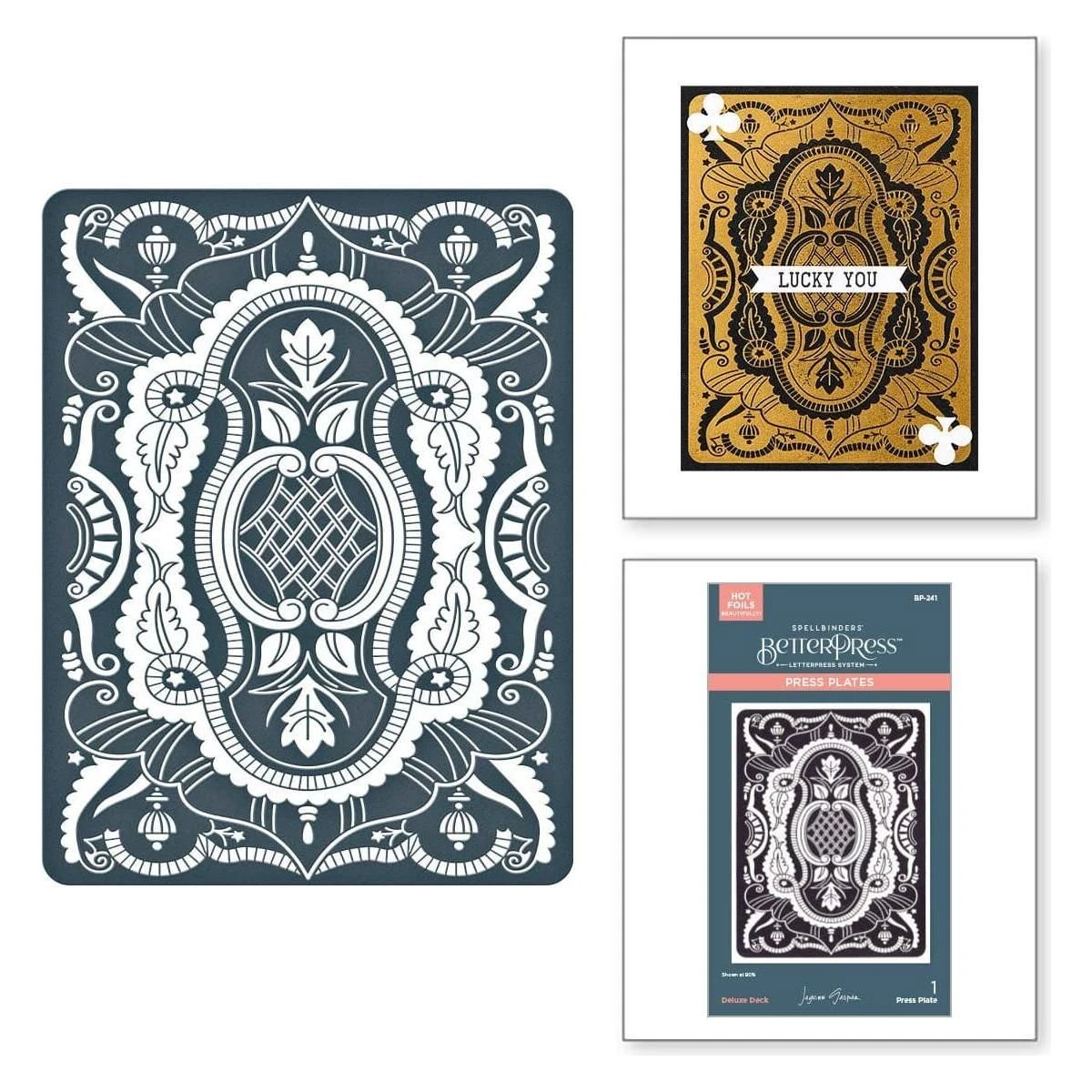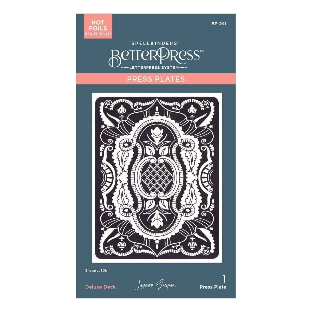 Deluxe Deck Press Plate is part of the Jack of All Trades Collection by Jaycee Gaspar. The plate presses a stunning and intricate card deck design! A wonderful way to use a colorful palette besides the classic red and black colors! Ink the plates with the BetterPress Ink to be pressed against the BetterPress Cotton Card Panel and Sheets for a crisp letterpress design.