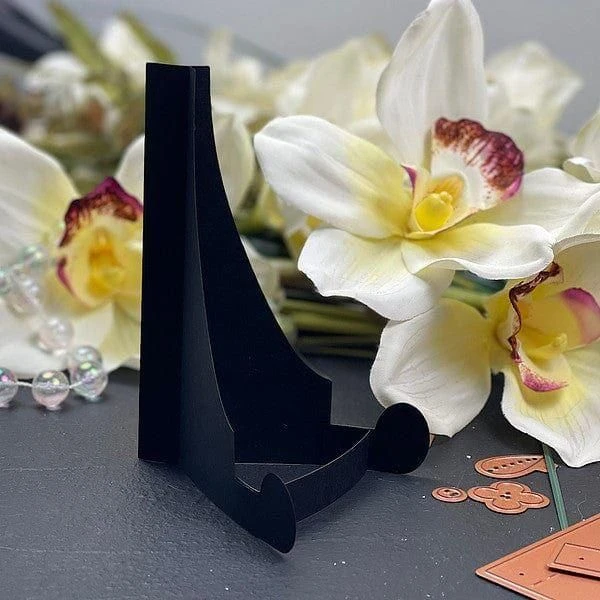 DIY Easel Etched Dies are part of the Florals Through the Year Collection. When assembled, this set of three thin metal cutting dies makes a fabulous and super useful easel stand. Proudly display your card creations, papercraft projects, DIY calendars and more. This stand is small, but mighty! Make one and send it with a card or calendar to friends…what a great gift idea!