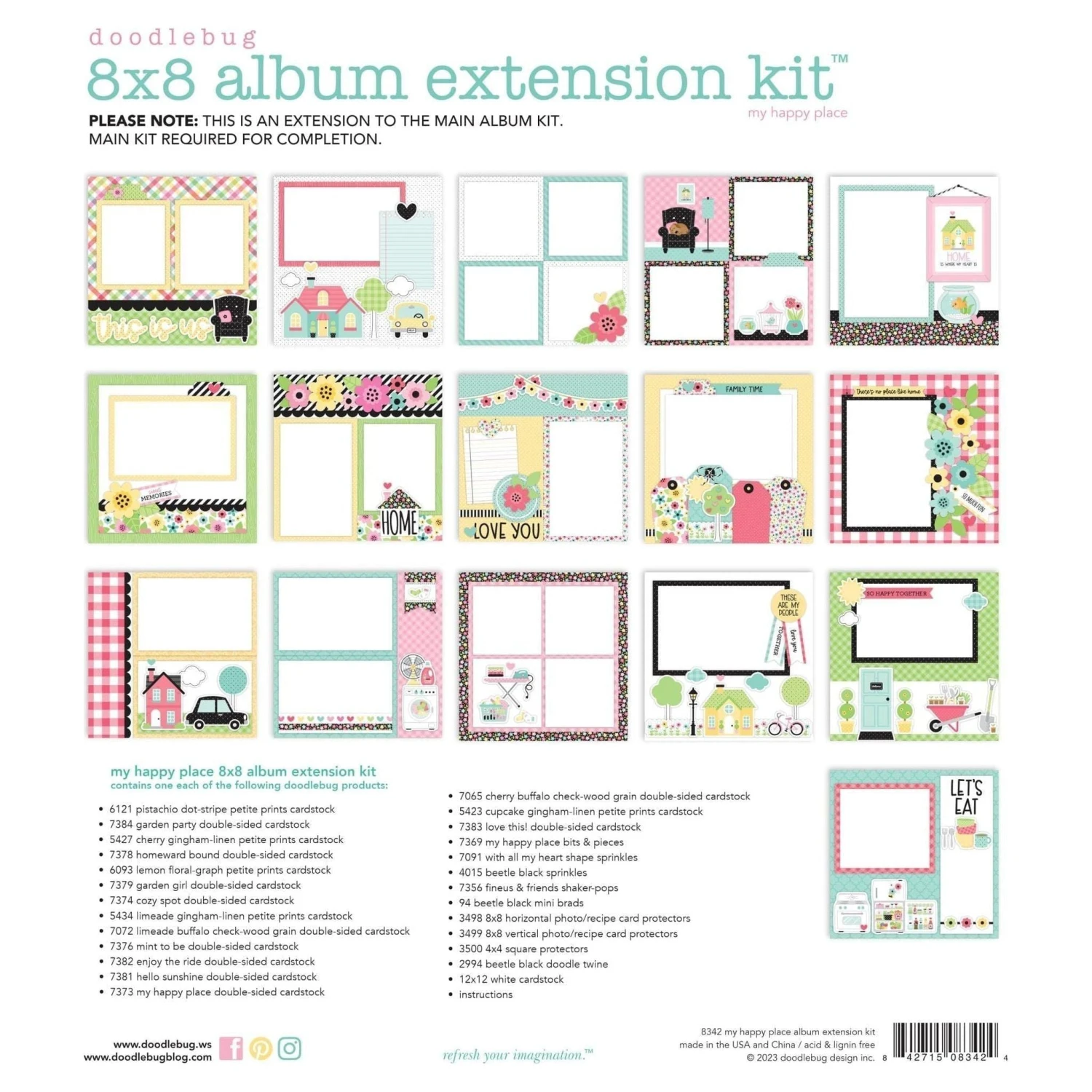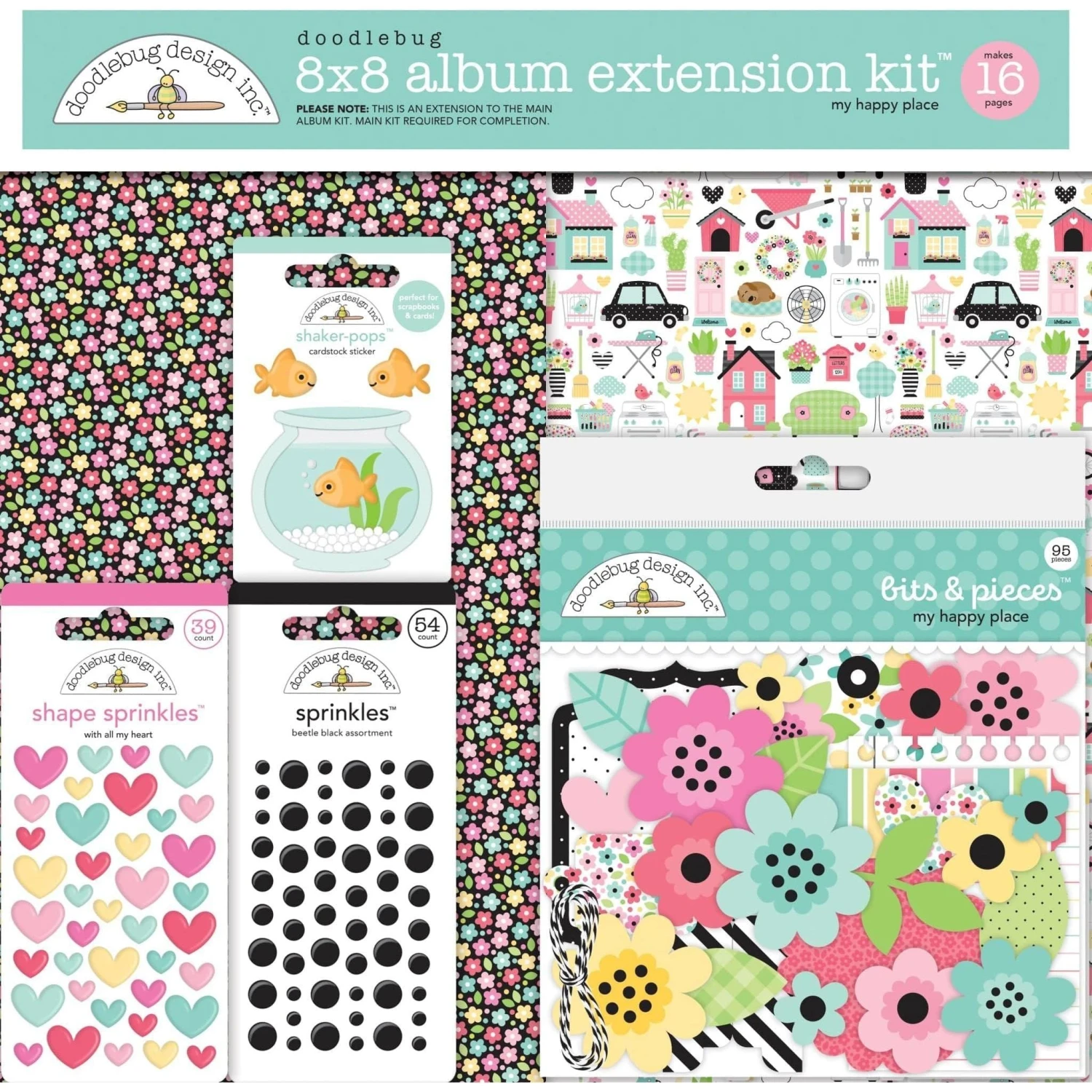 Doodlebug – My Happy Place Album Extension Kit 8×8: Add on to the My Happy Place Album kit with this wonderful extension kit. Scrapbook and design to your hearts desire with this adorable kit extension from Doodlebug! Â