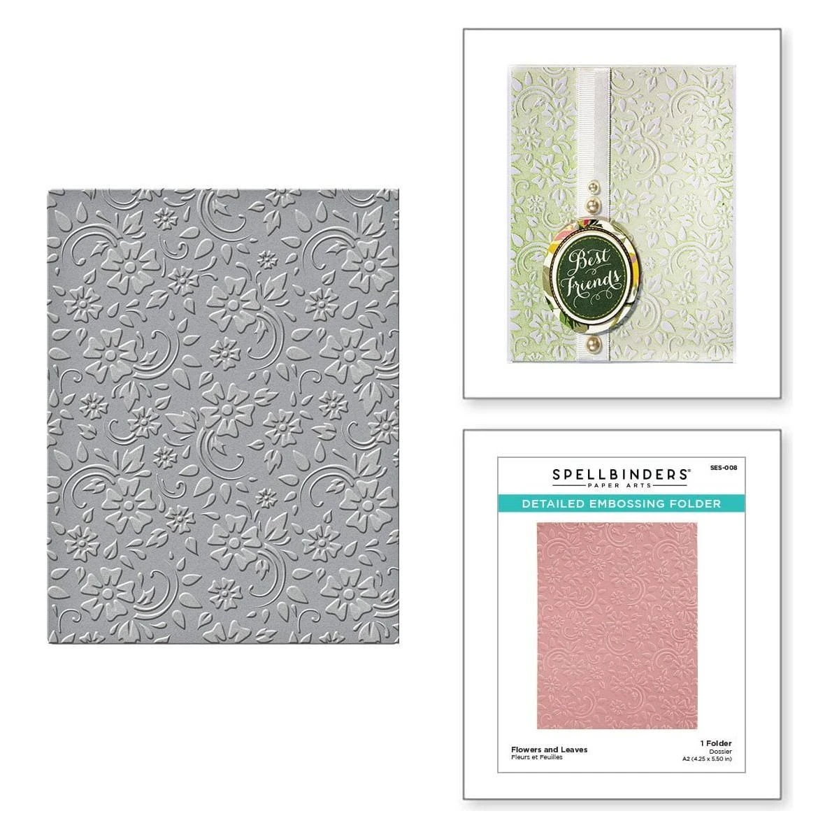 Spellbinders® Em-bossing Foldåfers™ offers options for your beautifully detailed embossing and letterpress creations. The Flowers & Leaves folder brings movement of sweet swirly flowers in the design.