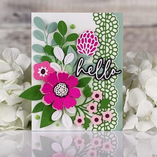 Eyelet Scallop Border Etched Dies are part of the Vivid Expressions Collection. Die-cut the set of two thin metal cutting dies to make a delicate eyelet scalloped border. Nest the border die and rim together to make a lovely eyelet scalloped edge. The finished border measures 8.13 x 1.20 in./20.00 x 3.10 cm.