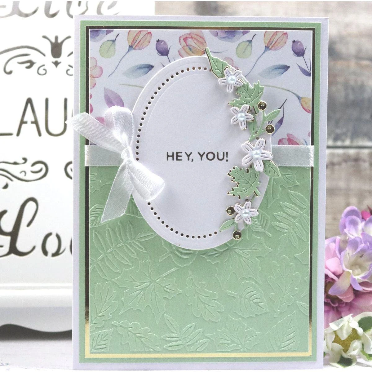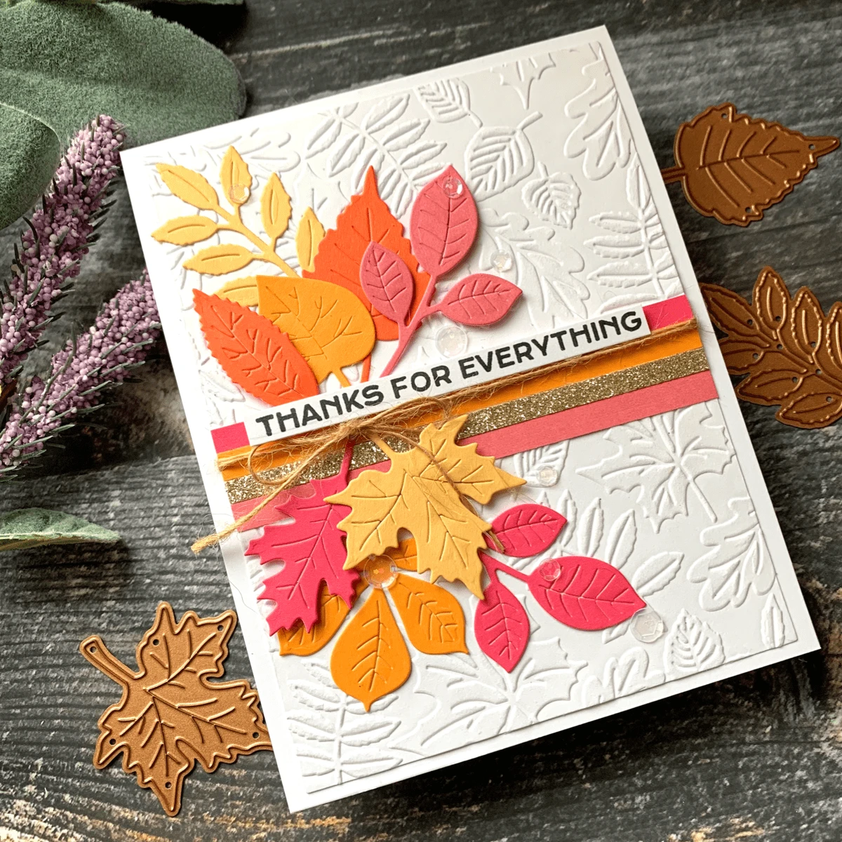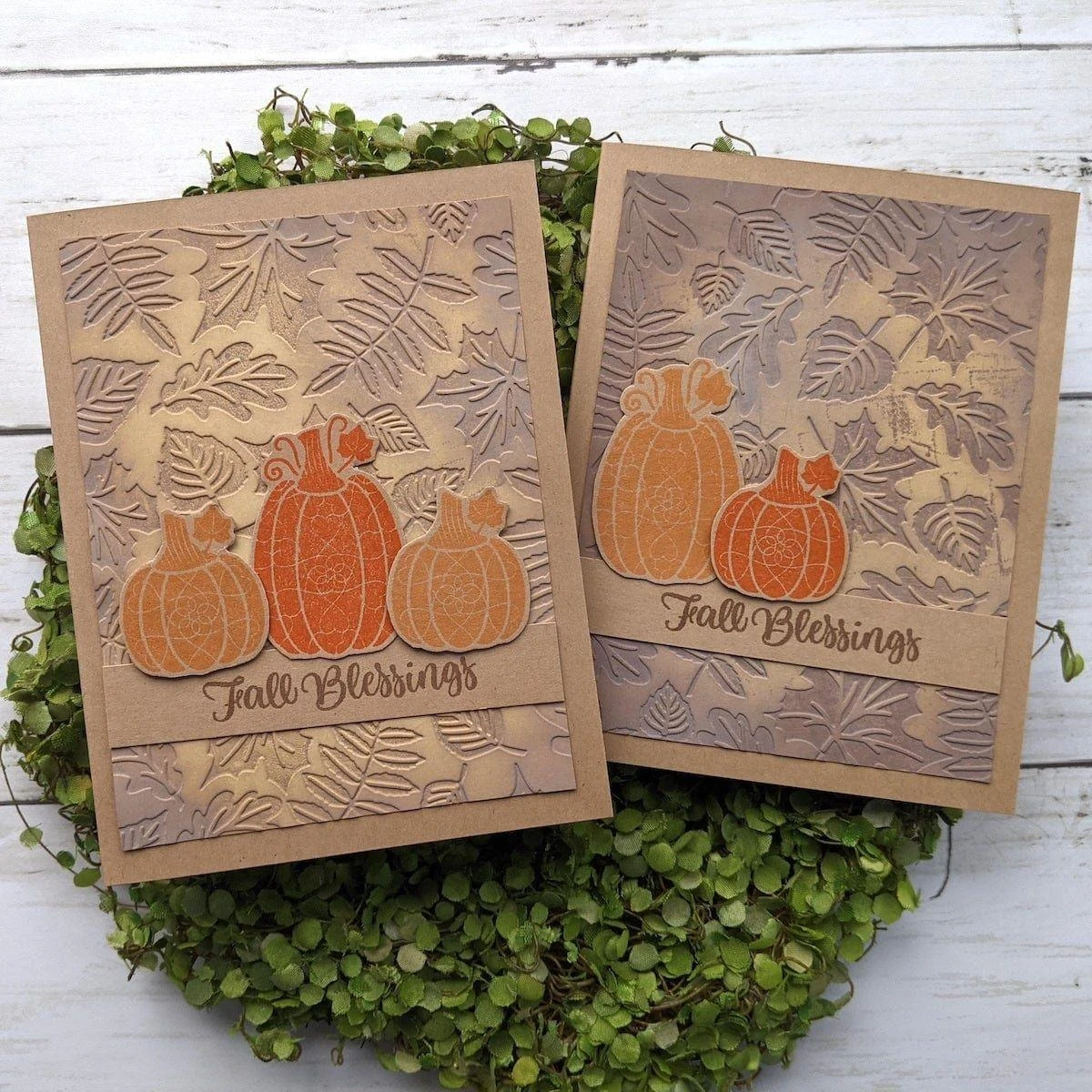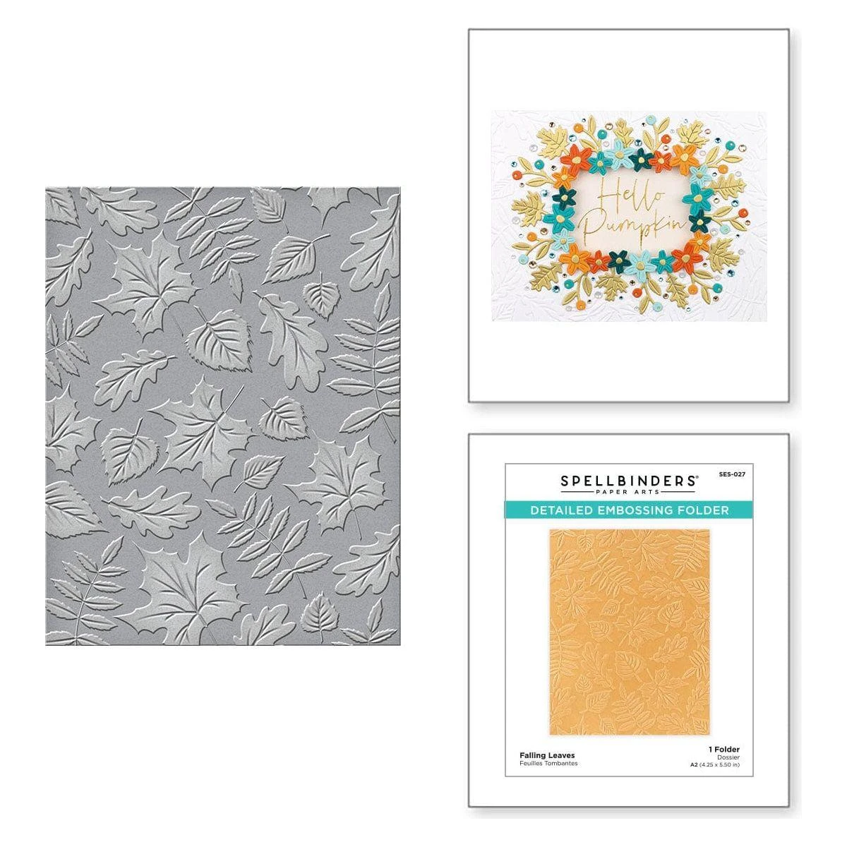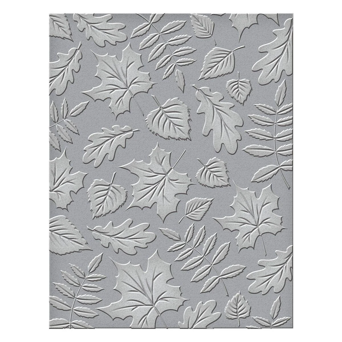 Falling Leaves Embossing Folder is part of the Fall Traditions Collection. The embossing designs of scattering leaves is a stunning background against any A2-sized (4.25 x 5.5-inch) card front!
