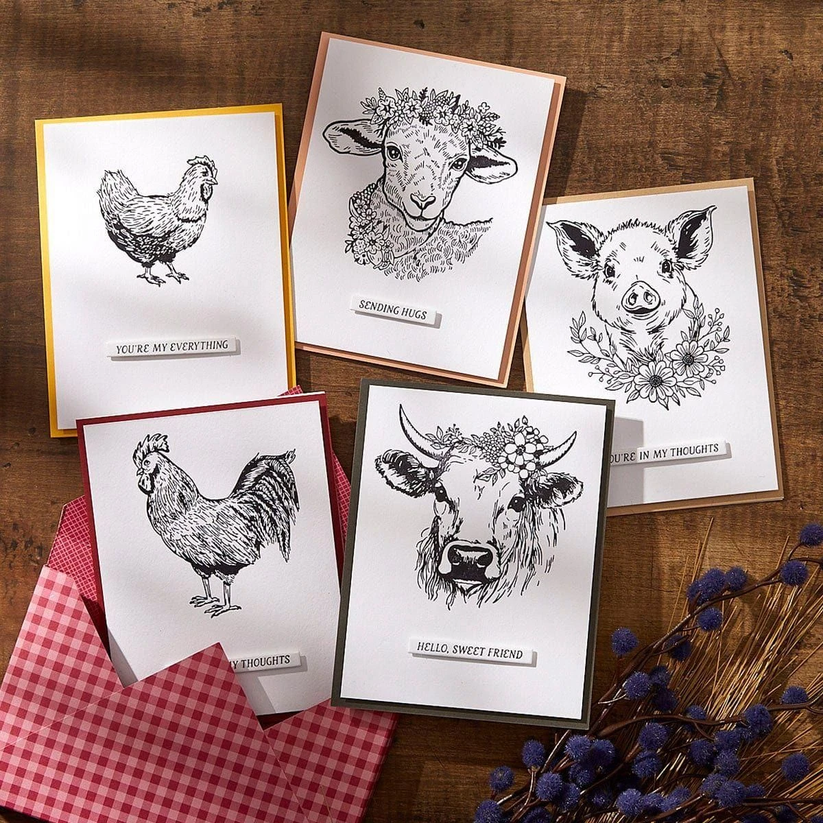 Add some down-home charm to your projects with the sweet, realistic farm animals in Justine’s Farm Collection. Another wonderful collaboration with talented designer Justine Dvorak, this collection combines refined simplicity with a dash of humor. Which animal speaks your language?