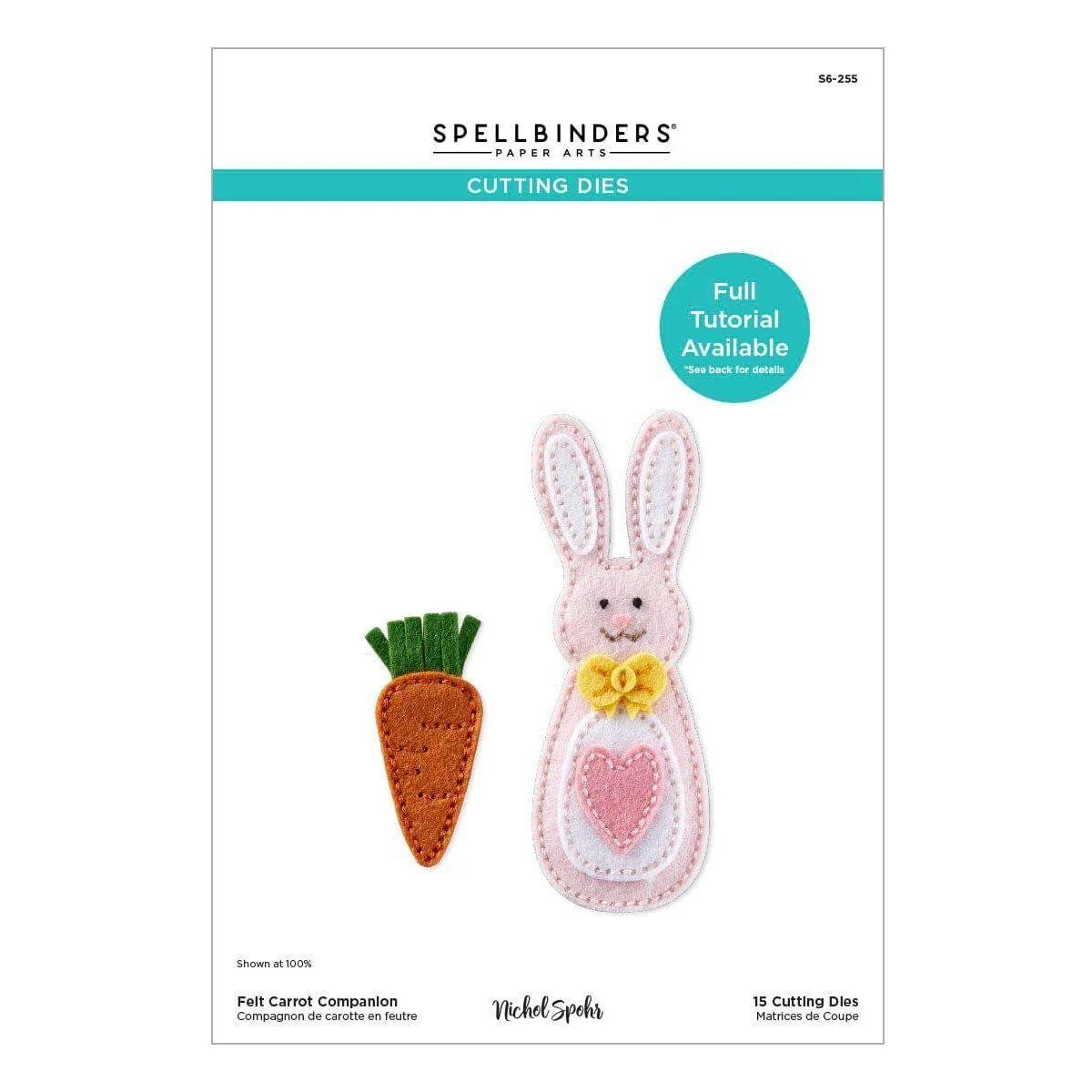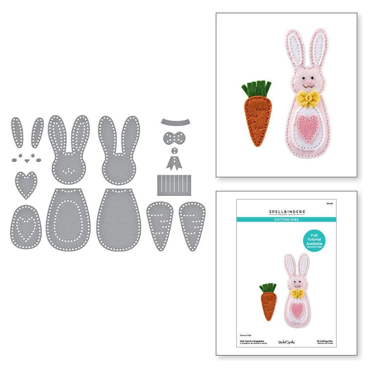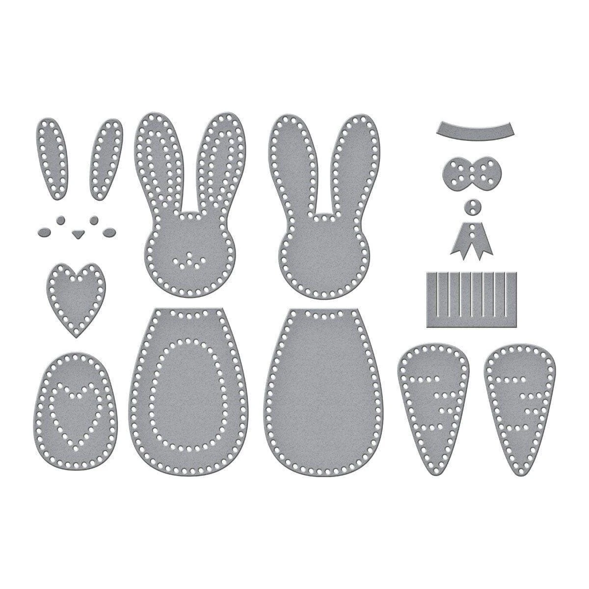 Felt Carrot Companion Etched Dies are from the Spring Felt Stitch & Create Collection by Nichol Spohr. Create this super cute bunny with her fuzzy ears and all its accessories including a carrot, using this set of 15 thin metal cutting dies. The detailed stitching design on the shapes edges gives a wonderful, finished look and creates a guide for stitching this bunny together. Cut with our Merino Wool Felt Sheets sets to bring it to life in texture and dimension, or cut in paper for an entirely different look.