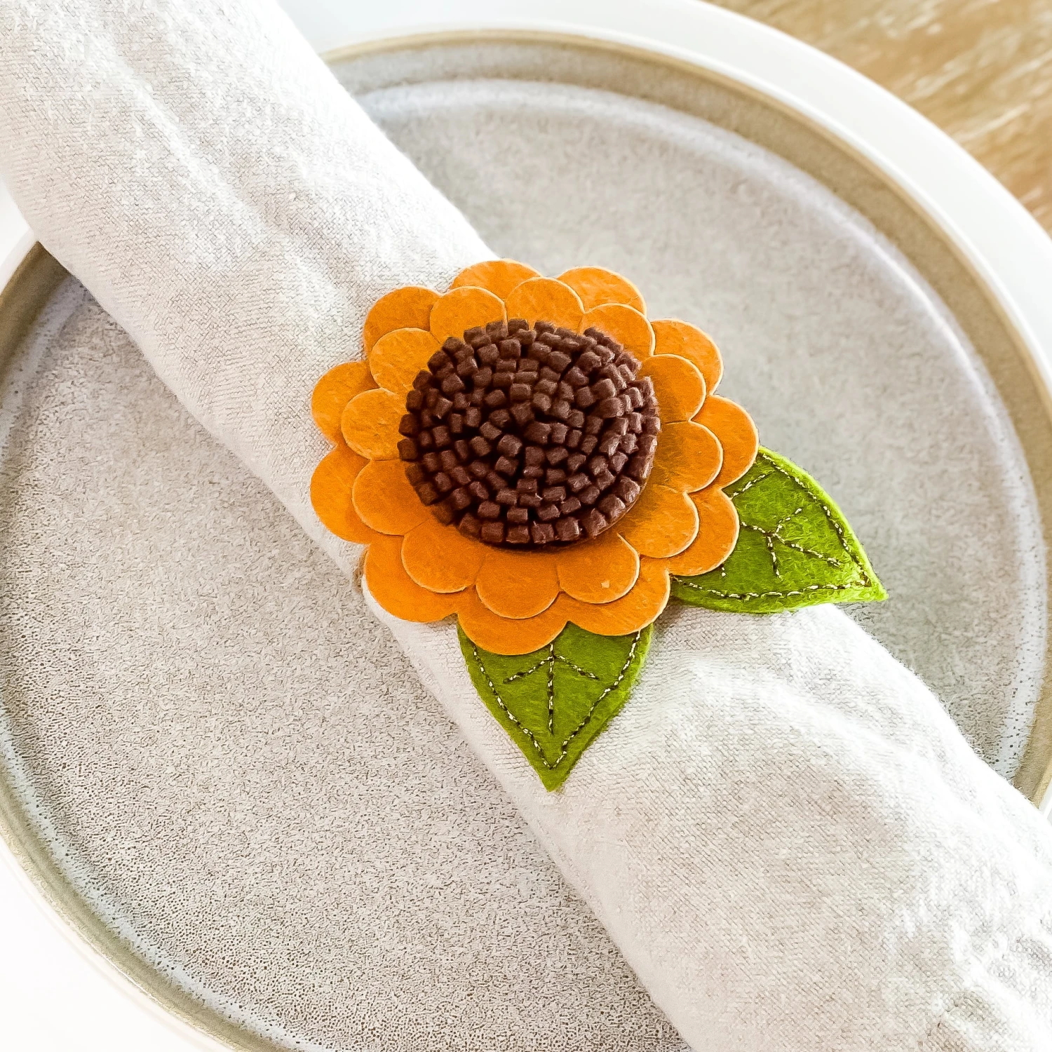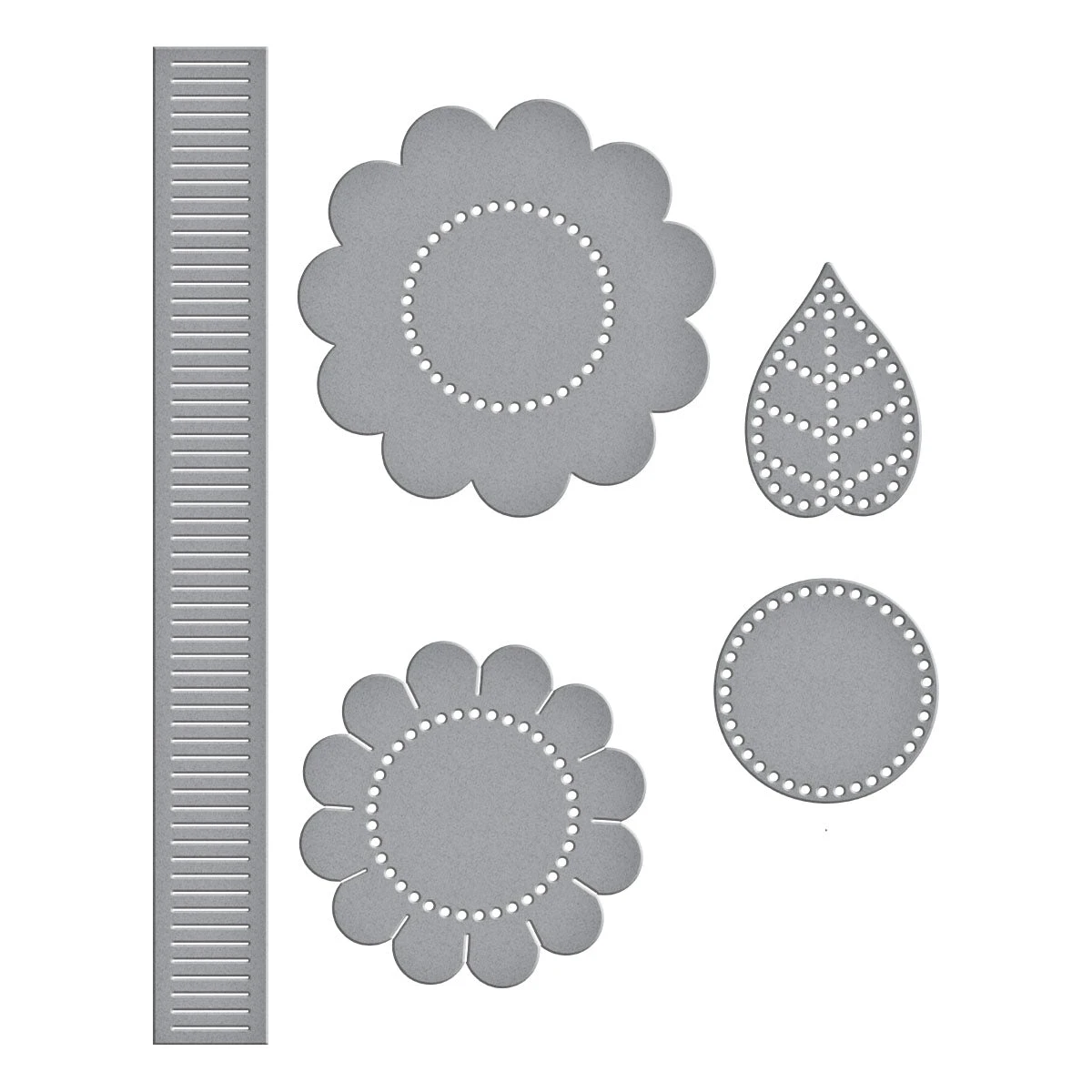 Felt Sunflower Bloom Etched Dies are from the Summer Felt Stitch & Create Collection by Nichol Spohr. Make this friendly sunflower accented with leaves and textured center for extra interest and dimension using this set of five thin metal cutting dies. The detailed stitching on the shapes’ edges gives it a finished look and becomes a stitching guide. Cut with our Merino Wool Felt Sheets for texture or cut in paper for a different look. The finished Sunflower Bloom measures approximately 2.92 x 2.92 in./7.40 x 7.40 cm and the Leaf measures 1.21 x 1.75 in./3.10 x 4.40 cm.