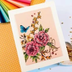 BetterPress Floral Alphabet on its own or use with the sentiment. Center the letter and sentiment on an A2-size (4.25 x 5.5-inch) card base for a lovely focal point design. Refer to images for placement recommendation.