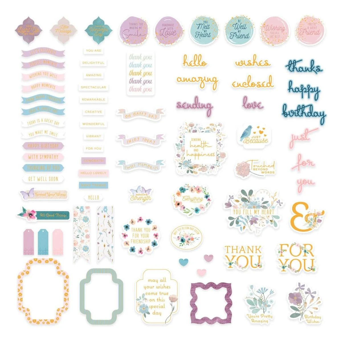 Floral Friendship Printed Die Cut Sentiments are from the Floral Friendship Collection and contains 154 die cuts. It is full of wonderful sentiments accented with flowers, banners, wreaths, label shapes and more! These will be a perfect way to add the finishing touch to your card creations!
