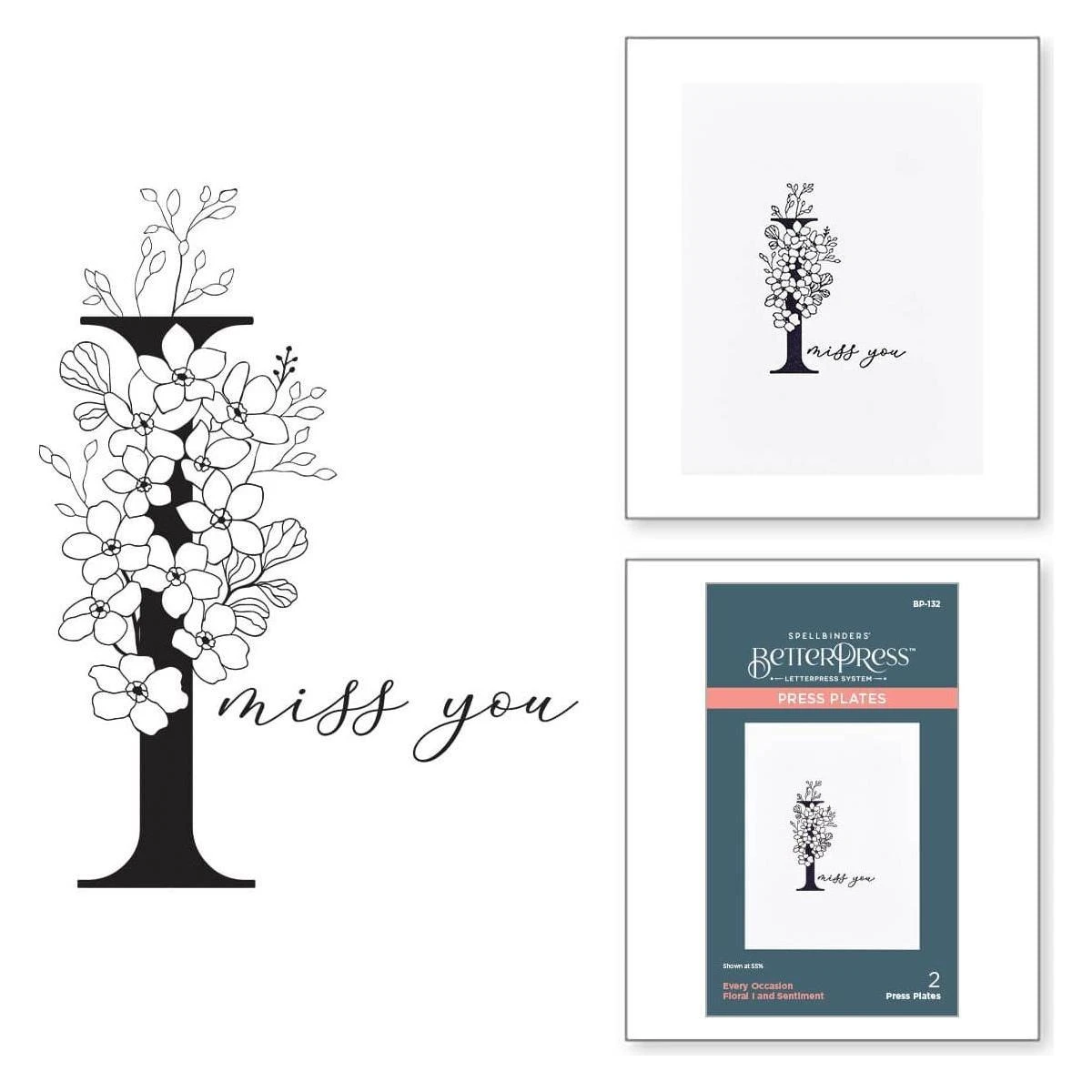 Floral I and Sentiment Press Plate is part of the Every Occasion Floral Alphabet Collection and includes two press plates. The largest plate is a stunning contemporary uppercase I font accented with floral details. The second plate compliments the letter with a sentiment, (I) miss you. Ink the plates with the BetterPress Ink to be pressed against the BetterPress Cotton Card Panel and Sheets for a crisp letterpress design.