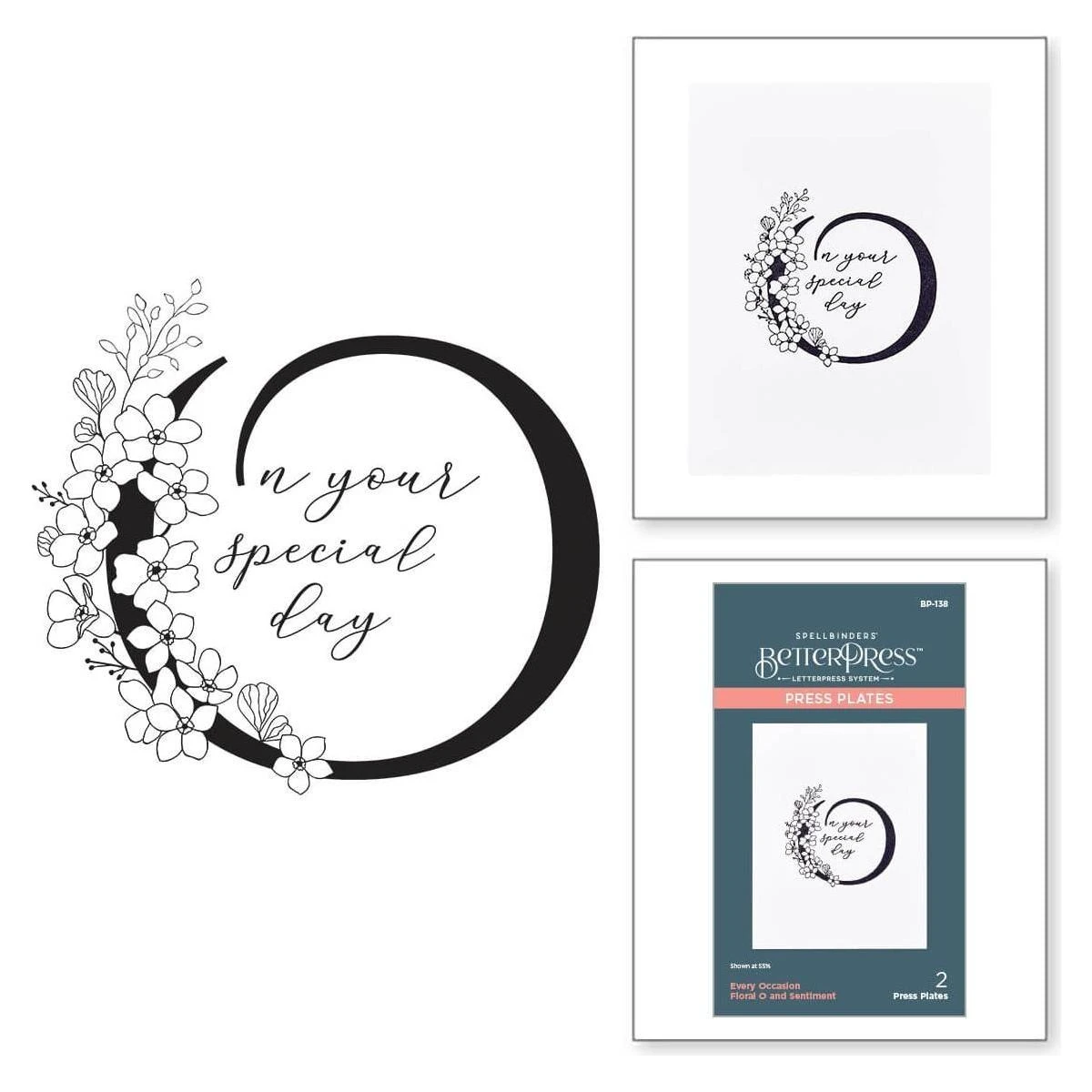 Floral O and Sentiment Press Plate is part of the Every Occasion Floral Alphabet Collection and includes two press plates. The largest plate is a stunning contemporary uppercase O font accented with floral details. The second plate compliments the letter with a sentiment, (O)n your special day. Ink the plates with the BetterPress Ink to be pressed against the BetterPress Cotton Card Panel and Sheets for a crisp letterpress design.