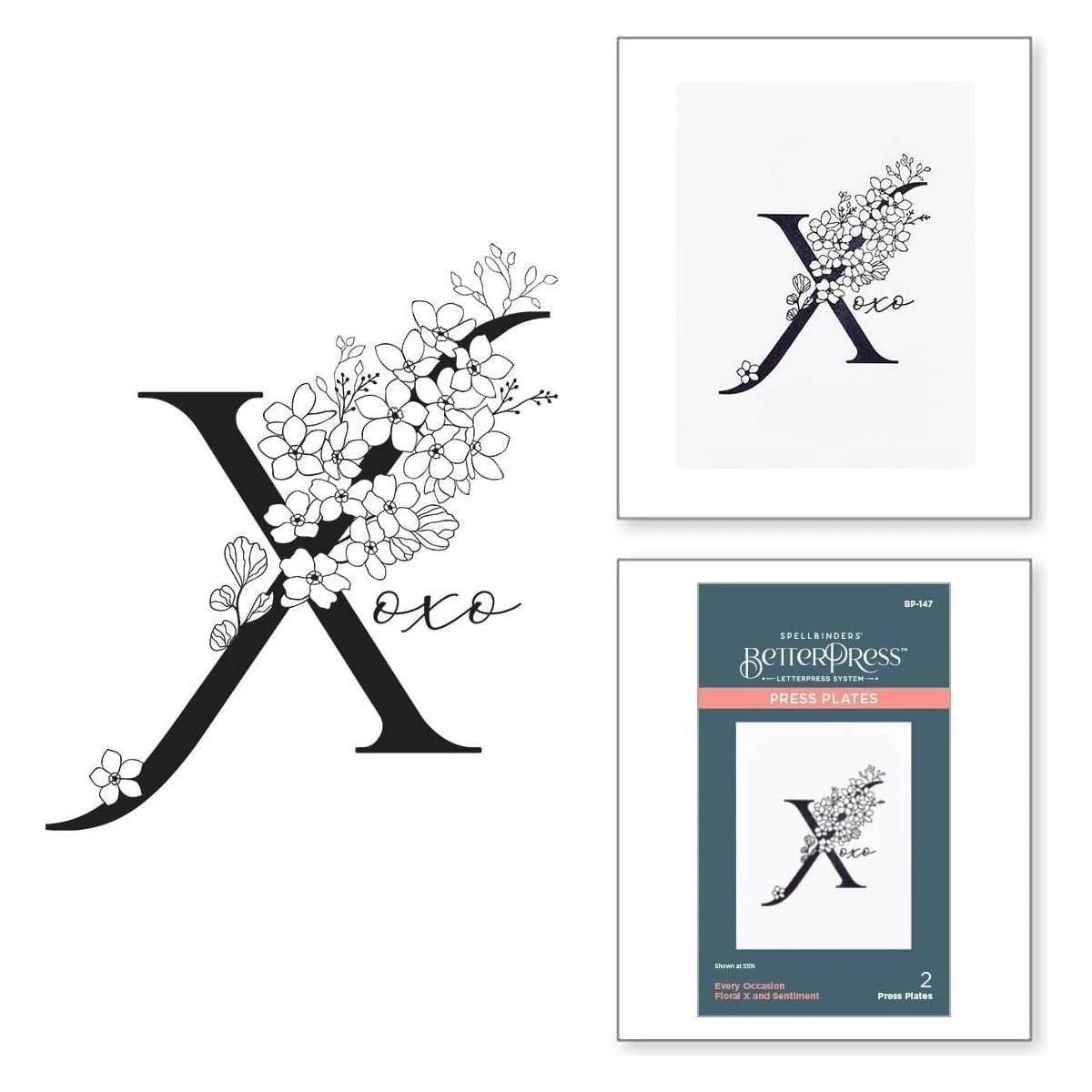 Floral X and Sentiment Press Plate is part of the Every Occasion Floral Alphabet Collection and includes two press plates. The largest plate is a stunning contemporary uppercase X font accented with floral details. The second plate compliments the letter with a sentiment, (X)oxo. Ink the plates with the BetterPress Ink to be pressed against the BetterPress Cotton Card Panel and Sheets for a crisp letterpress design.