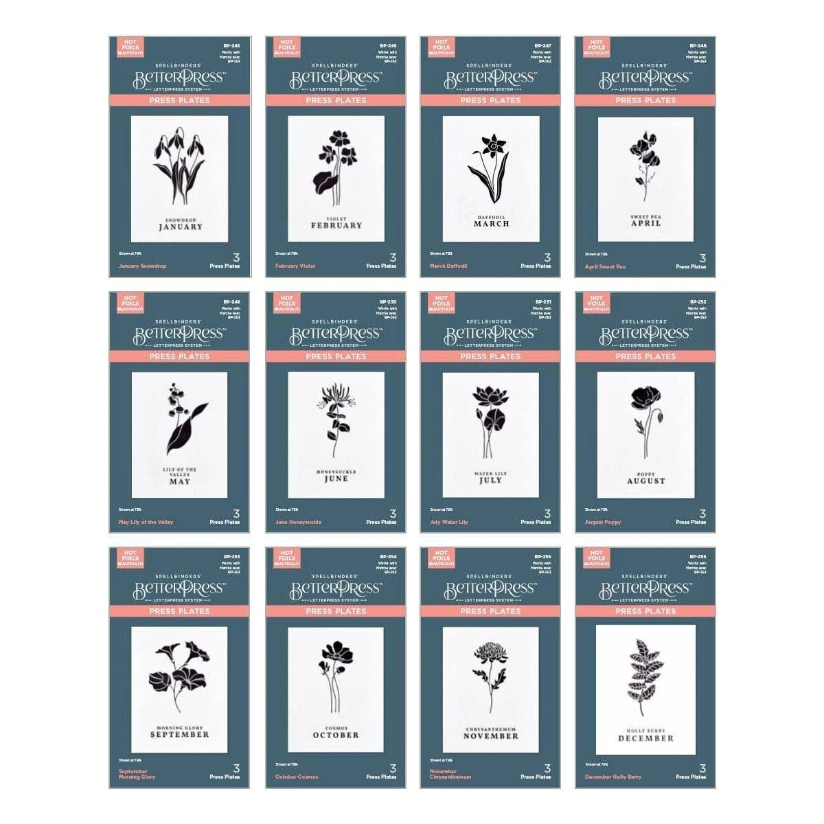 Florals Through the Year BetterPress Bundle includes all of the floral press plate sets in the collection: