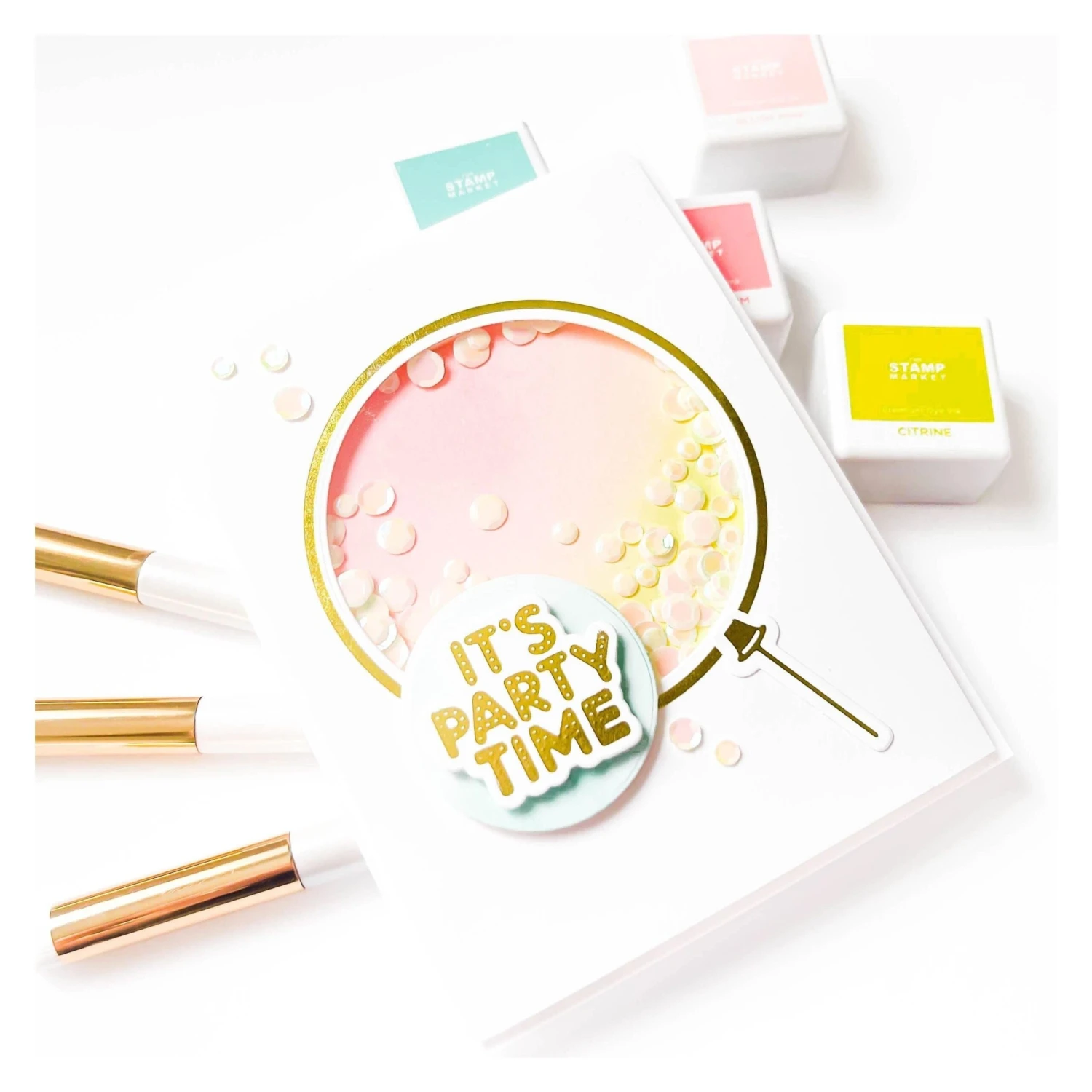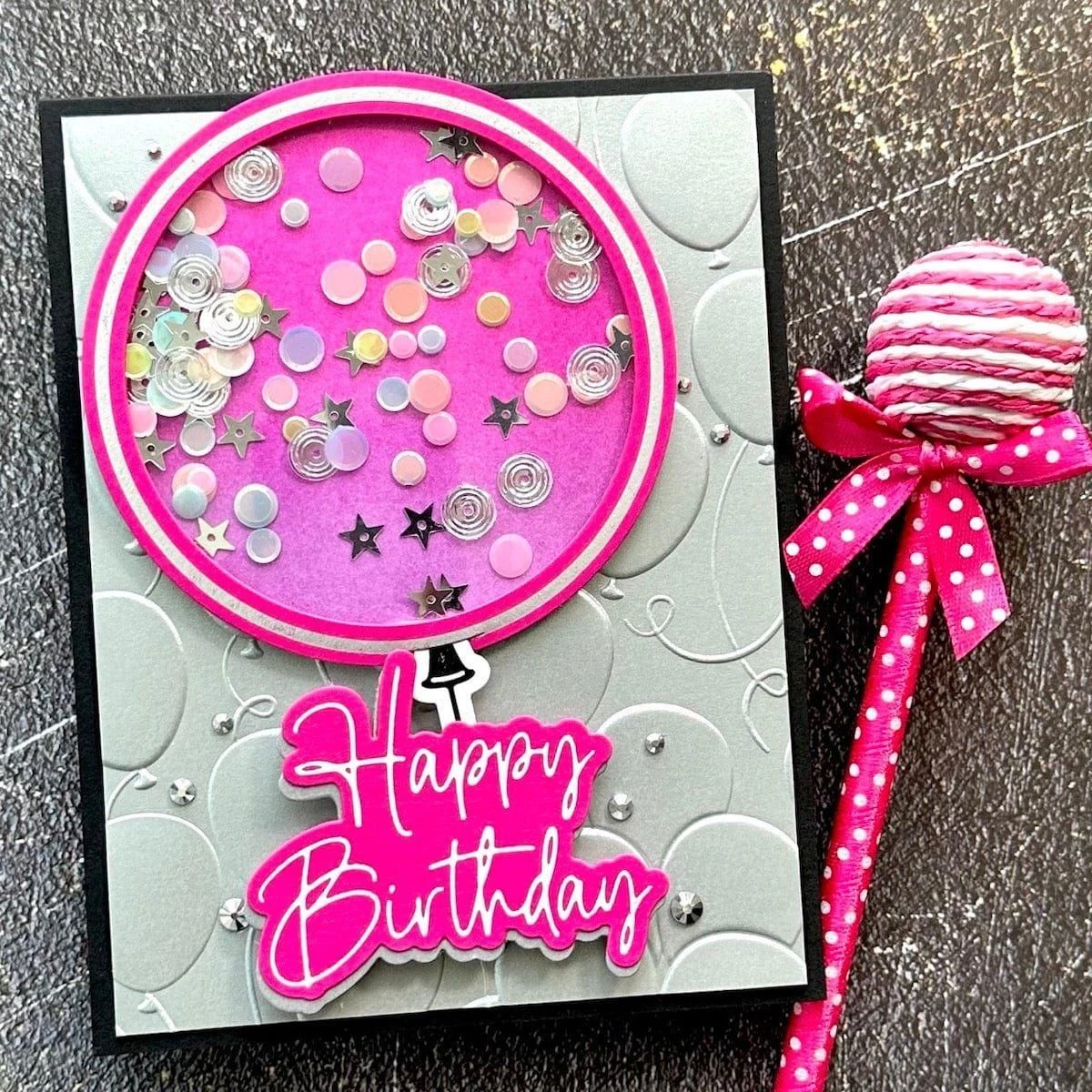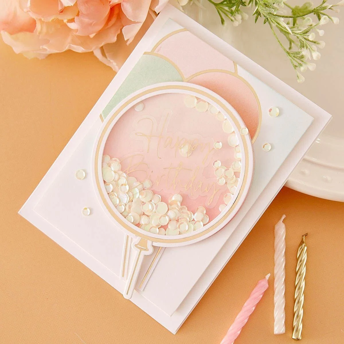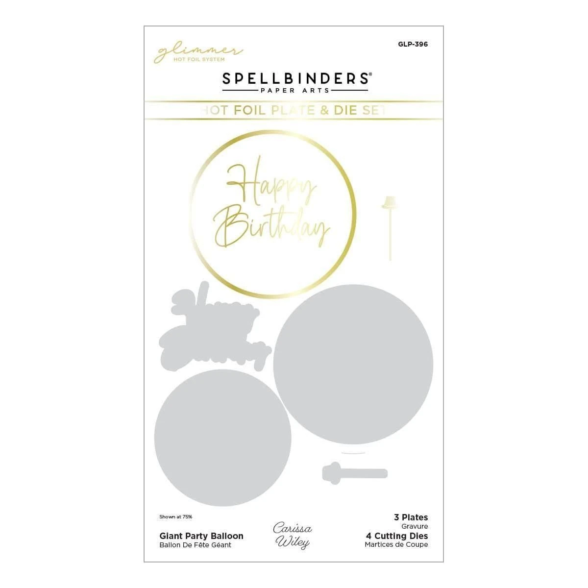 Giant Party Balloon Glimmer Hot Foil Plate & Die Set is part of the It’s My Party Collection by Carissa Wiley with a set of three hot foil plates and four thin metal cutting dies. It has everything you need to create a stunning foiled balloon shape with each one having its matching cutting die. Use the circle balloon shape to cut a ring or a shaker feature for more designing possibilities!