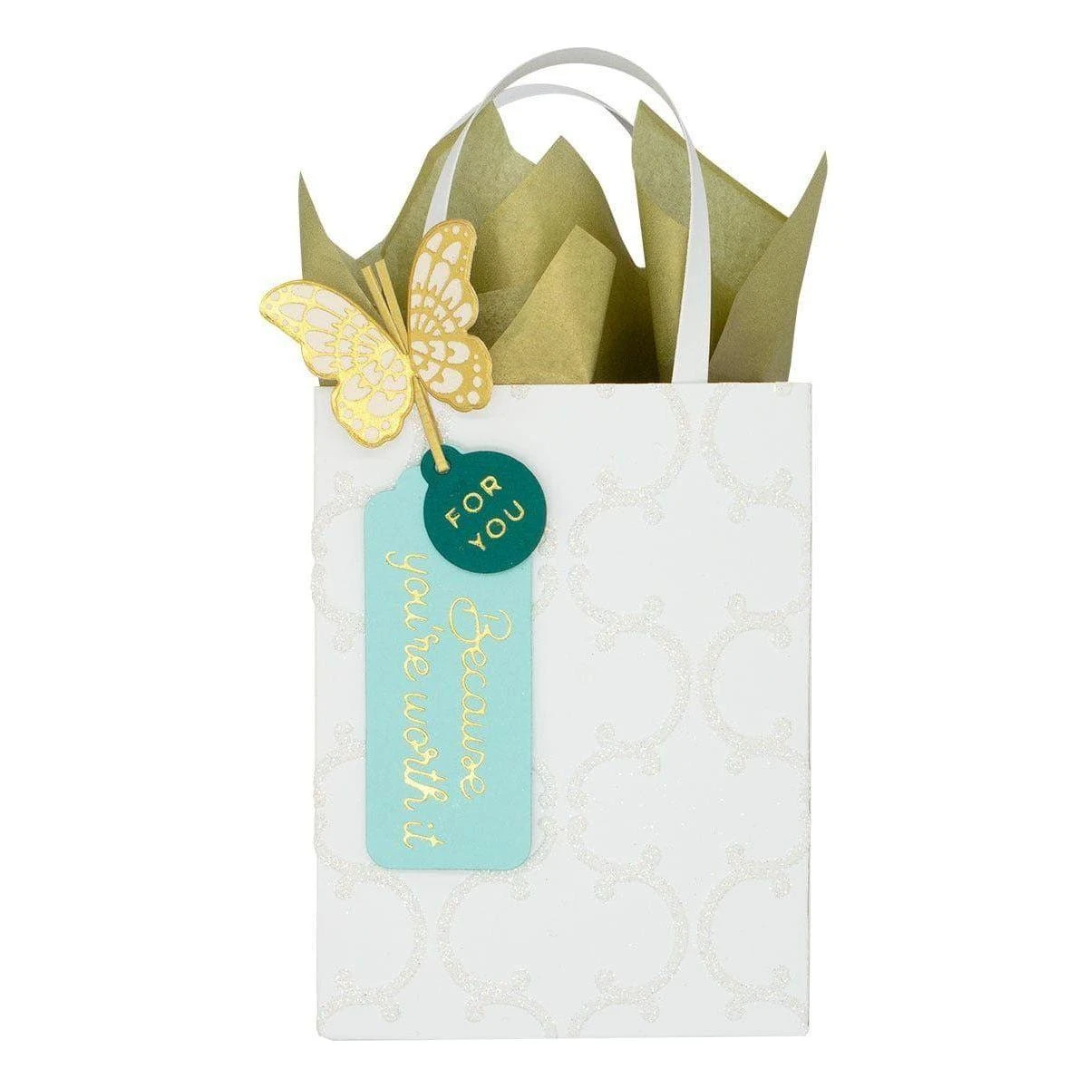 The Gift Bag Etched Dies is part of the Celebrate You Collection. This set of two thin metal dies assembles into a super cute bag. Perfect to hold treats, gift cards and other fun small items. Perfect for birthdays, graduation, or other special occasions. Simply die-cut two pieces of each die shape to create your bag. Use either tags, labels, stencil, embossing folders in the collection to embellish for a wonderful look! When it assembled, the bag without handles measures 1.75 x 3.125 x 4.25-inches.