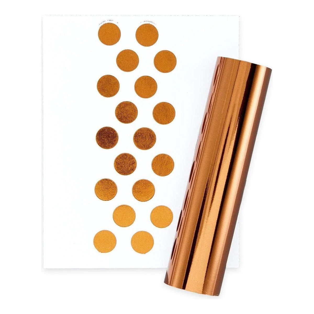 Glimmer Hot Foil Roll Copper comes in a 15 foot roll (five inch width).