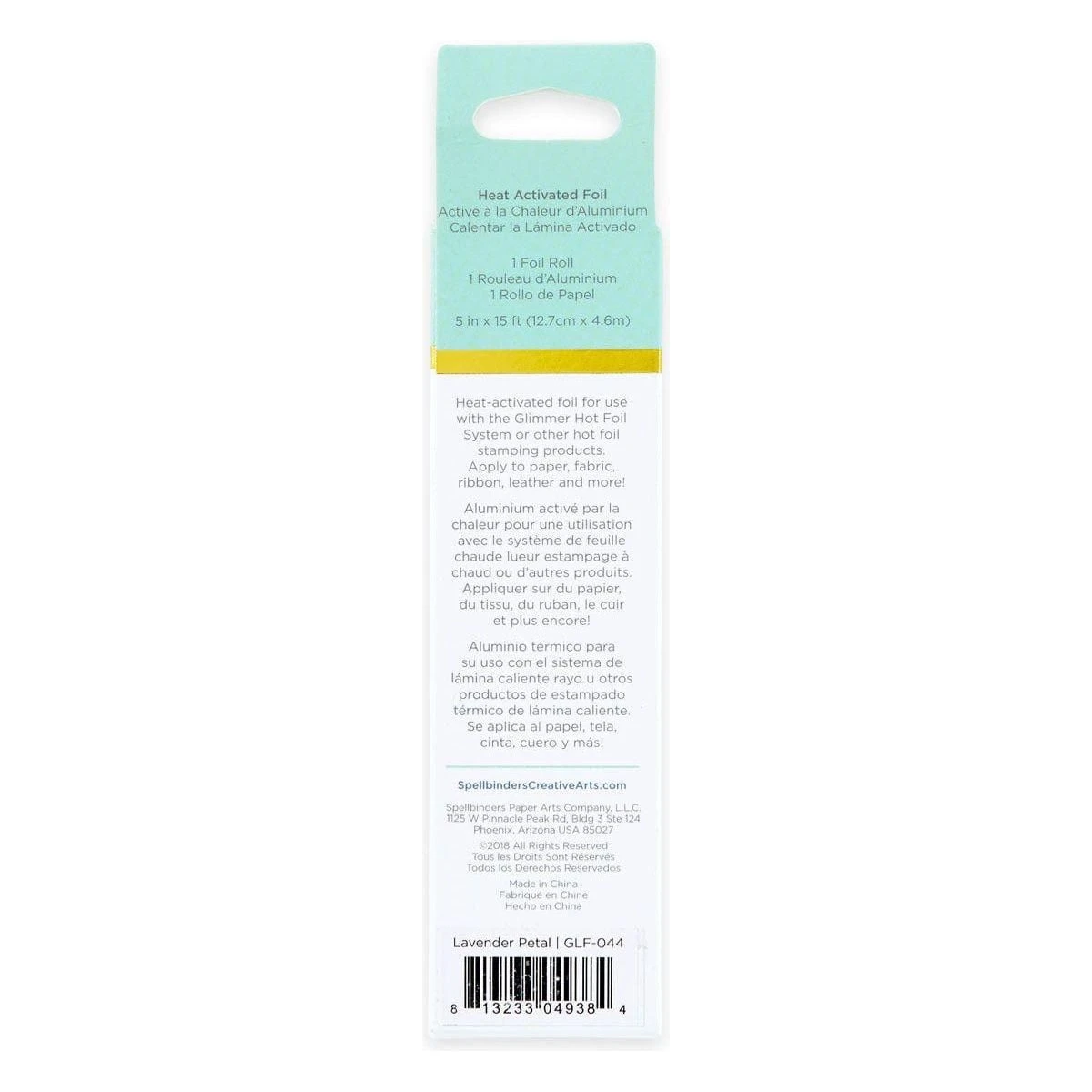 Glimmer Hot Foil Roll Lavender Petal comes in a 15-foot roll and a width of five-inches.