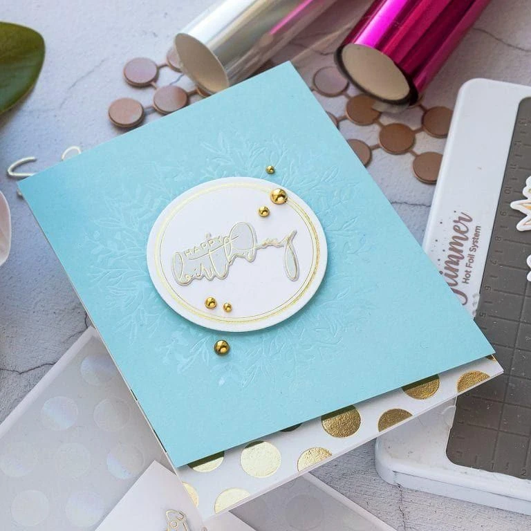 Glimmer Hot Foil Foils add stunning and eye-catching foil designs to any project from paper crafts to mixed media and more! The foils are exclusively designed to be used with the Spellbinders Glimmer Hot Foil System. The foils are designed to work with the Glimmer Hot Foil System and is NOT compatible with laminating systems such as the Minc System.