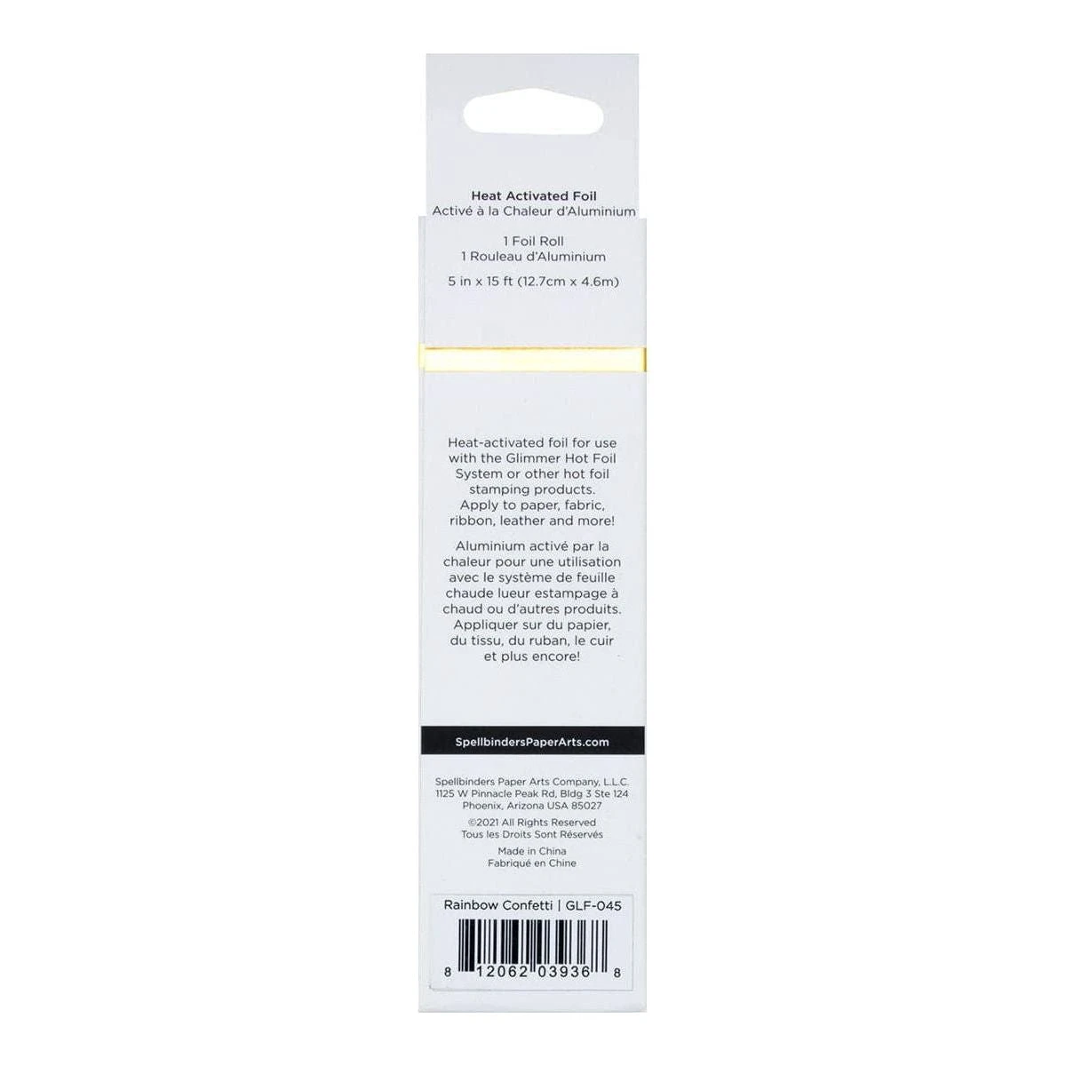 Glimmer Hot Foil Roll – Rainbow Confetti comes in a 15-foot roll and a width of five-inches.