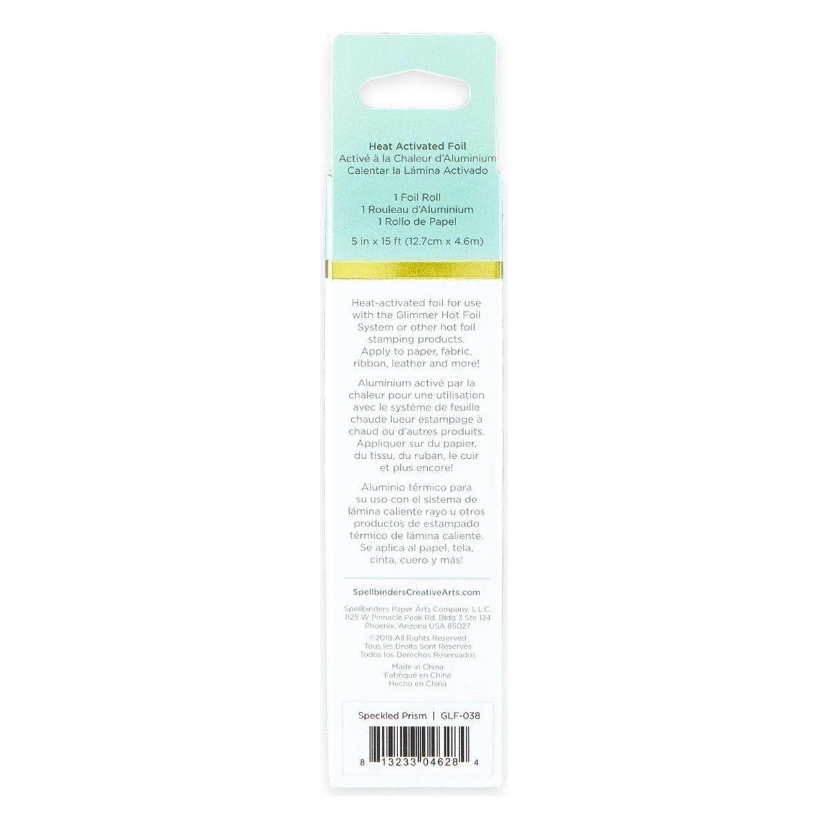 Glimmer Hot Foil Roll Speckled Prism comes in a 15-foot roll with a width of 5-inches.