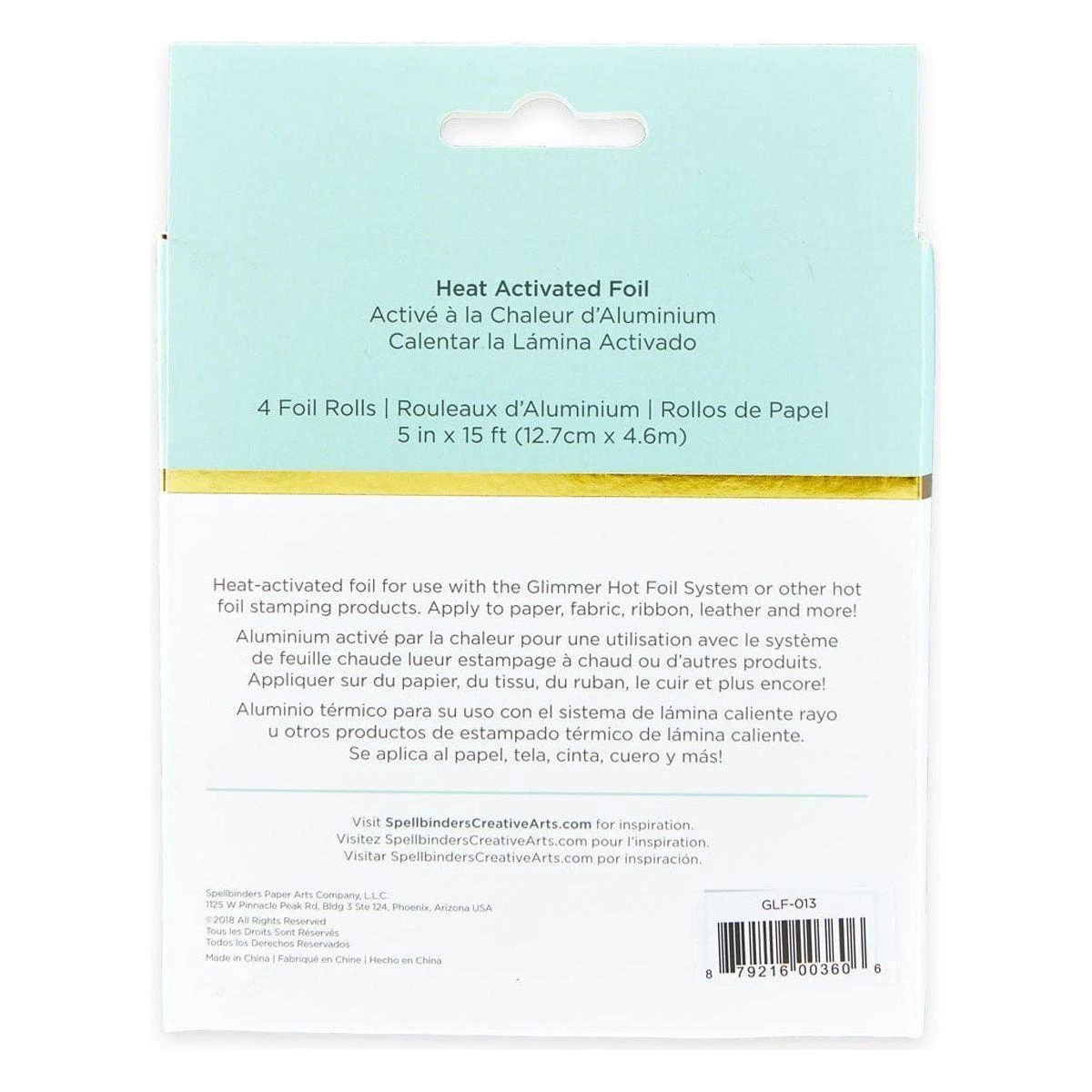 Glimmer Hot Foil Foils add stunning and eye catching foil designs to any project from paper crafts to mixed media and more! The foils are exclusively designed to be used with the Spellbinders Glimmer Hot Foil System. Our foils are designed to work with the Glimmer Hot Foil System and are NOT compatible with laminating systems such as the Minc System.