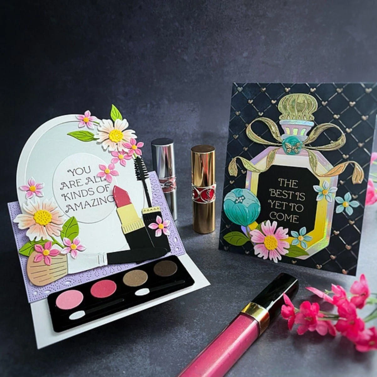 Gorgeous You Florals Etched Dies are part of the Gorgeous You Collection. These sweet blooms can be used for floral accents on any project. But this set of 10 thin metal cutting dies is designed to fit into the S4-1359 Gorgeous You Perfume Bottle Etched Dies. Together, it adds a beautiful visual to the stunning perfume bottle ensemble.