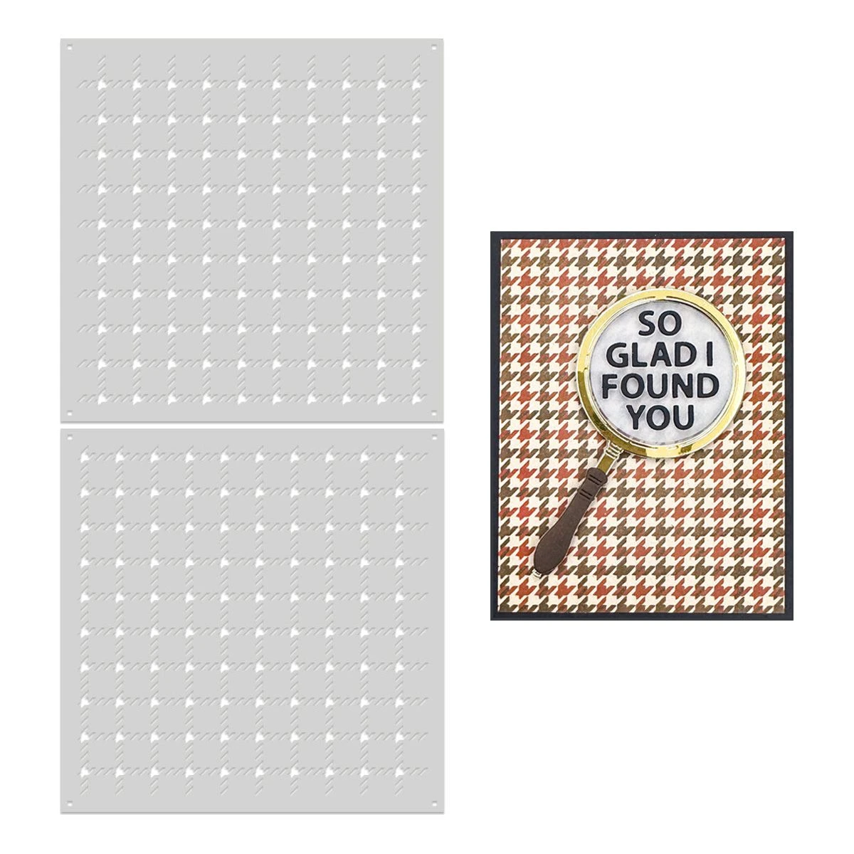 Add some vintage flair with the Houndstooth Layering Stencils from the Case Closed Collection. This set of 2 6 x 6″ layers to create the classic houndstooth pattern in two simple steps. Create it in traditional browns with Hero Arts inks, or opt for a bright color palette for extra fun. Coordinates perfectly with CM800 Miss Detective Stamp Set to create an adorable detective in a signature mystery-lovers look!